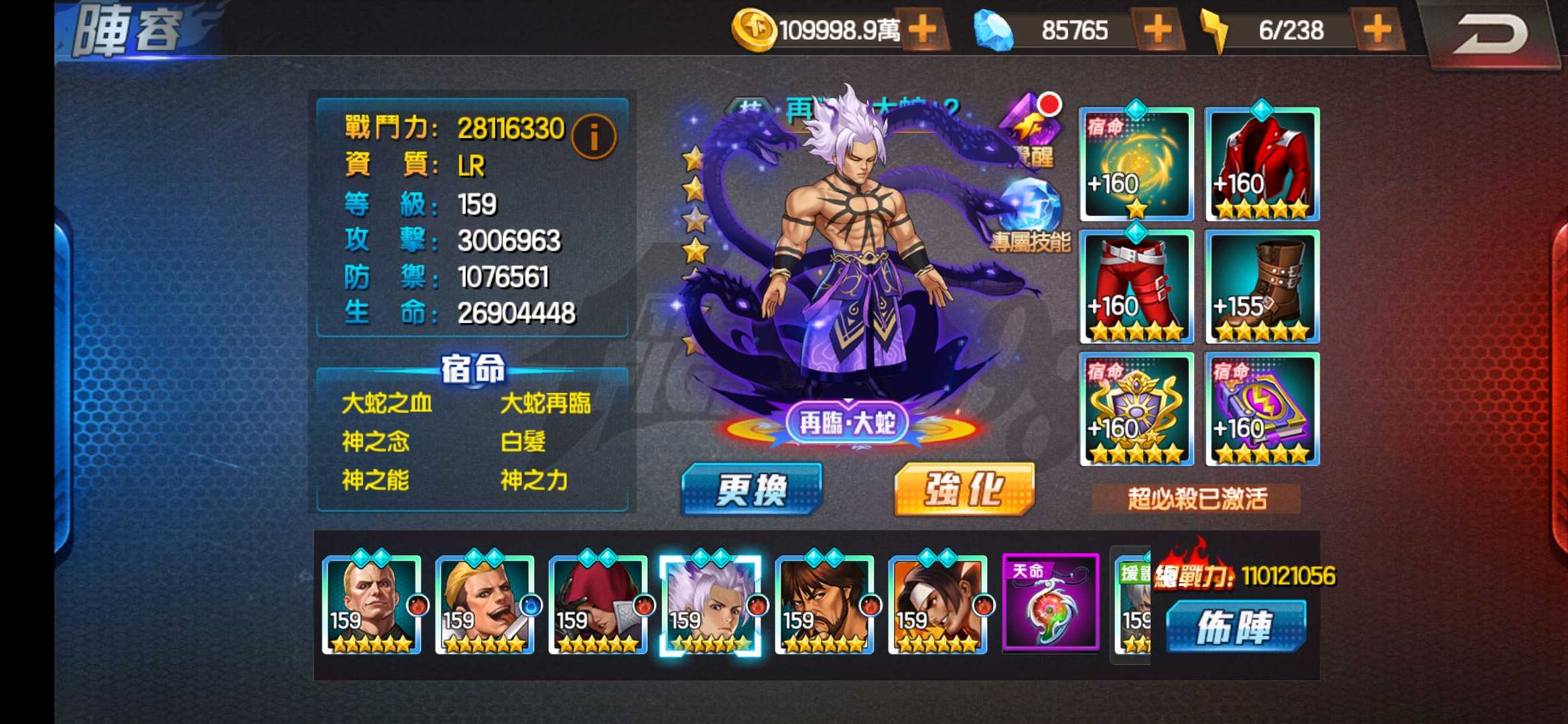 【159等】 V17 戰力1.1億 鑽石8萬6 再臨大蛇 五星戰魂 有終身卡 紅包團 附信箱