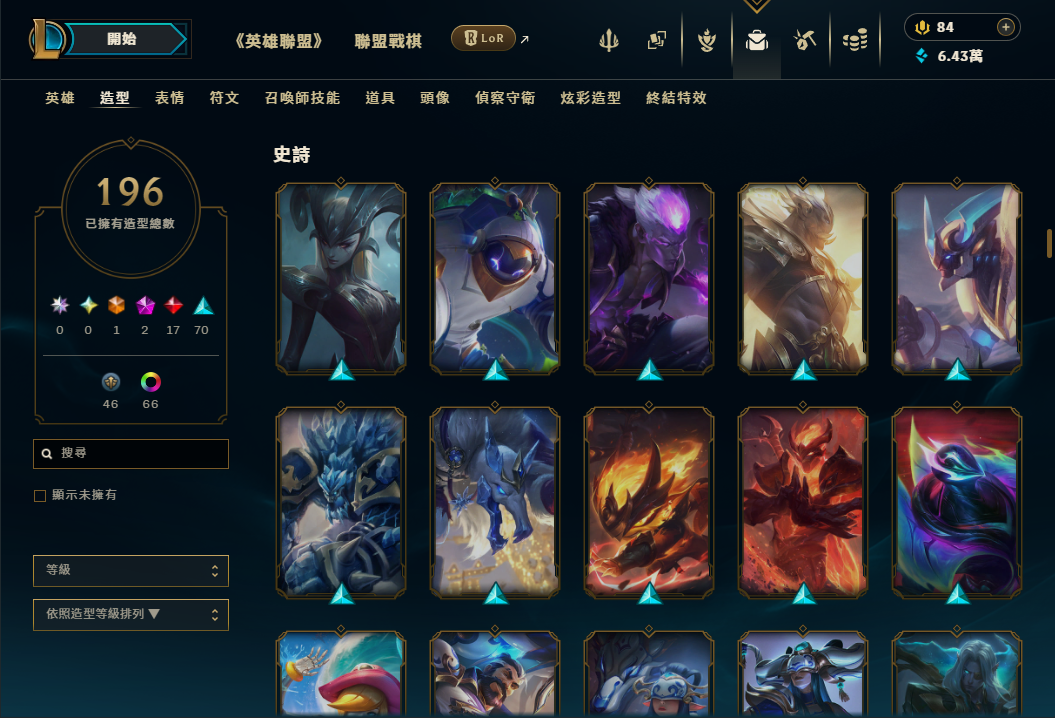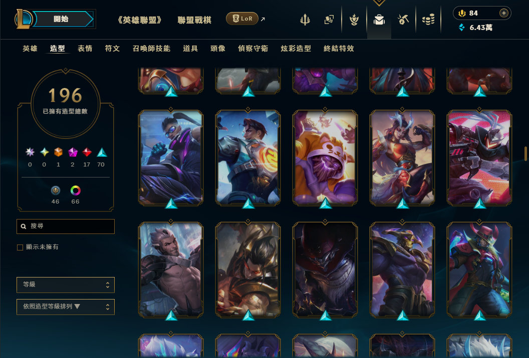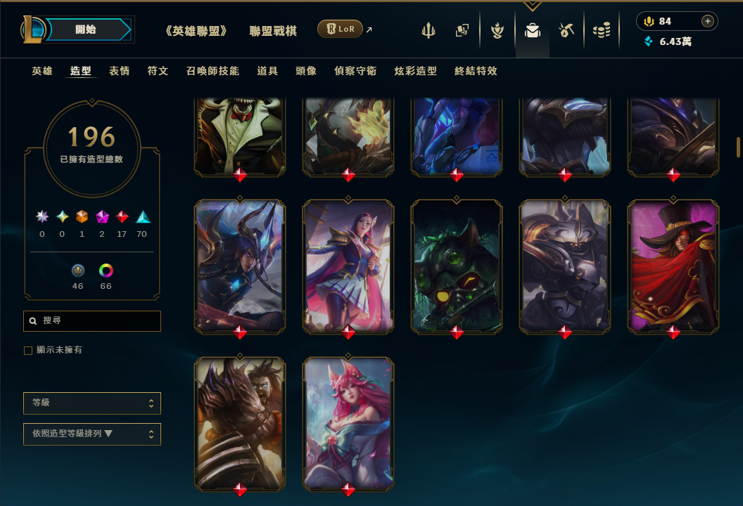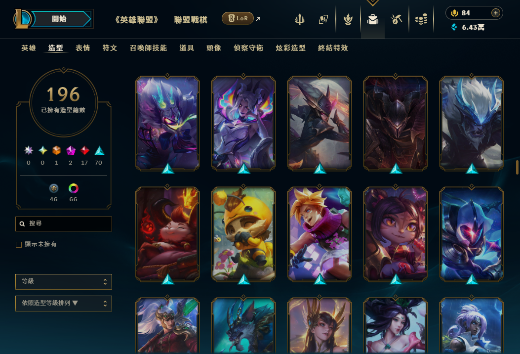 帳號 等級489 全英雄 + 造型196個 + 戰爭英雄系列x14隻