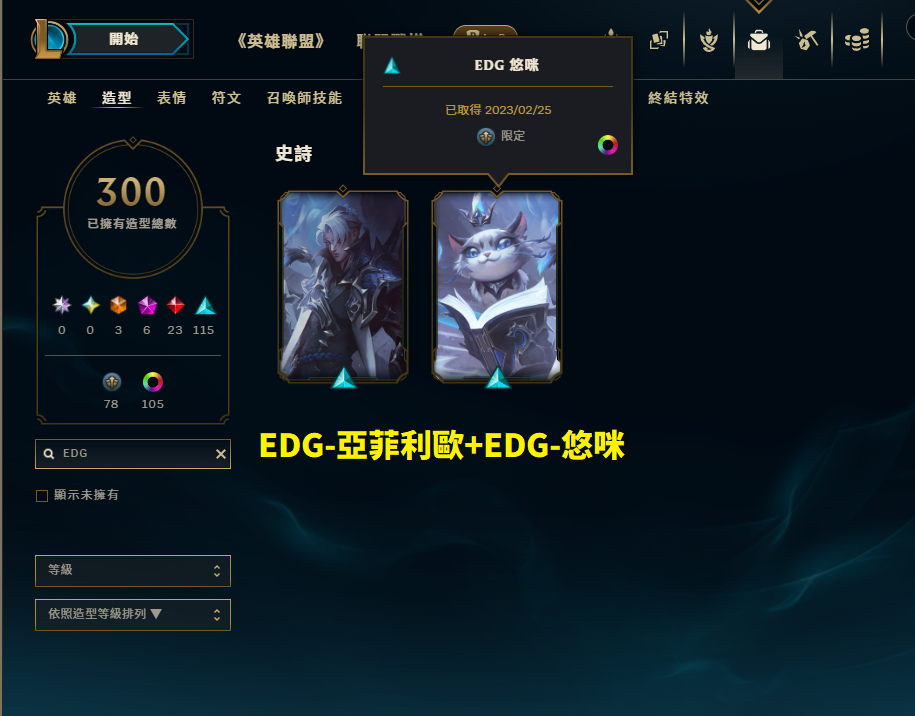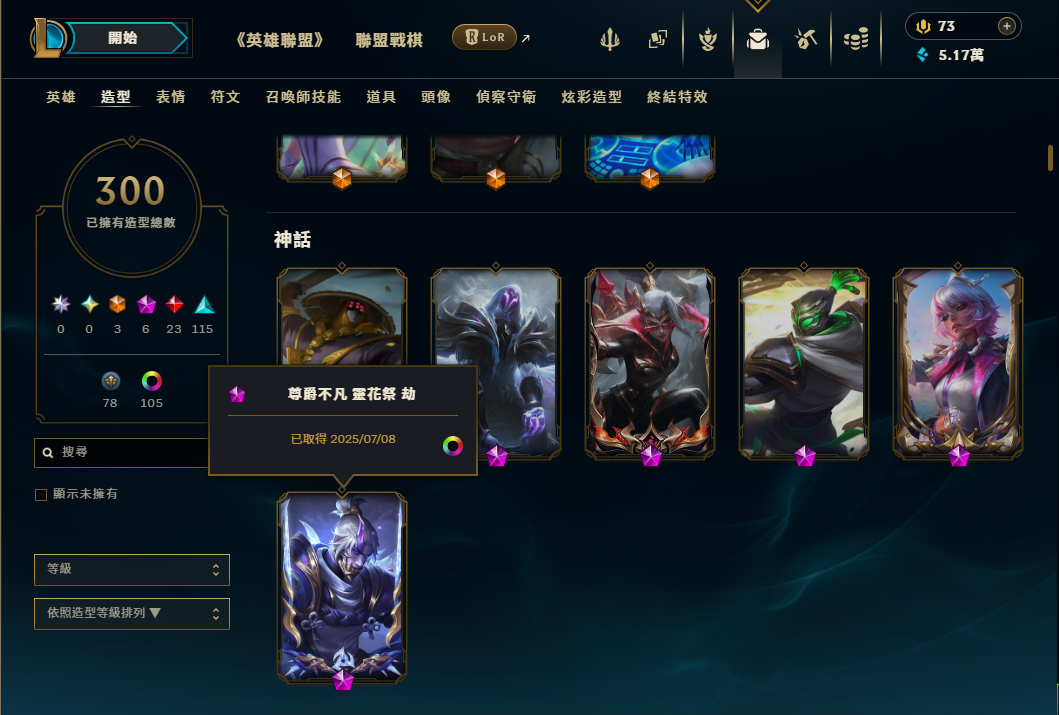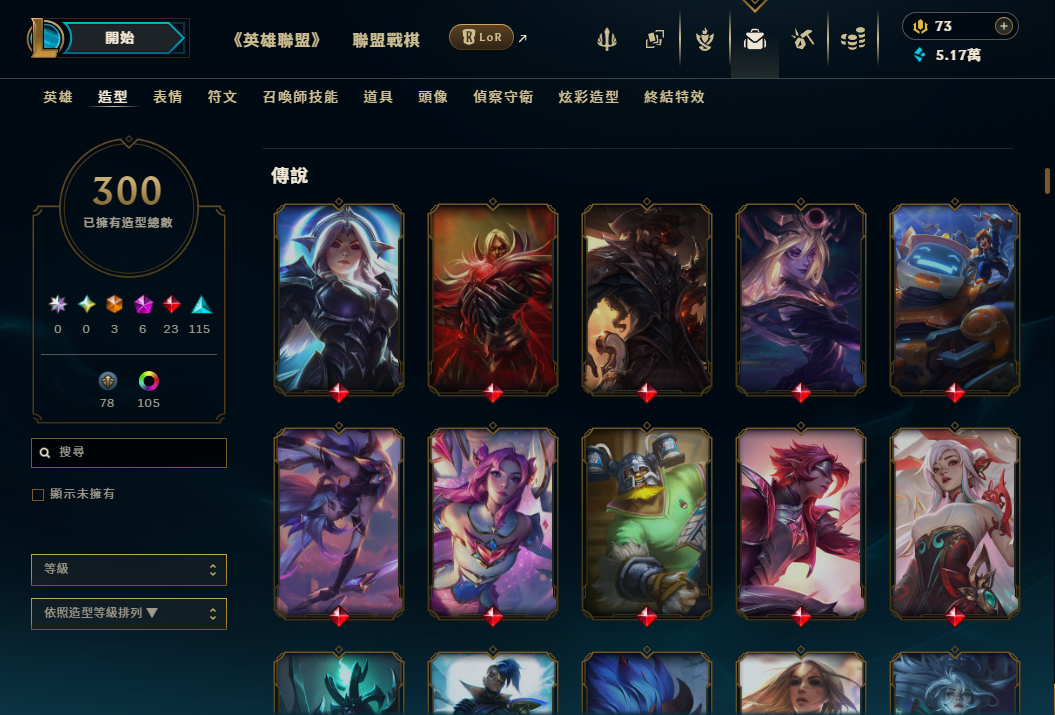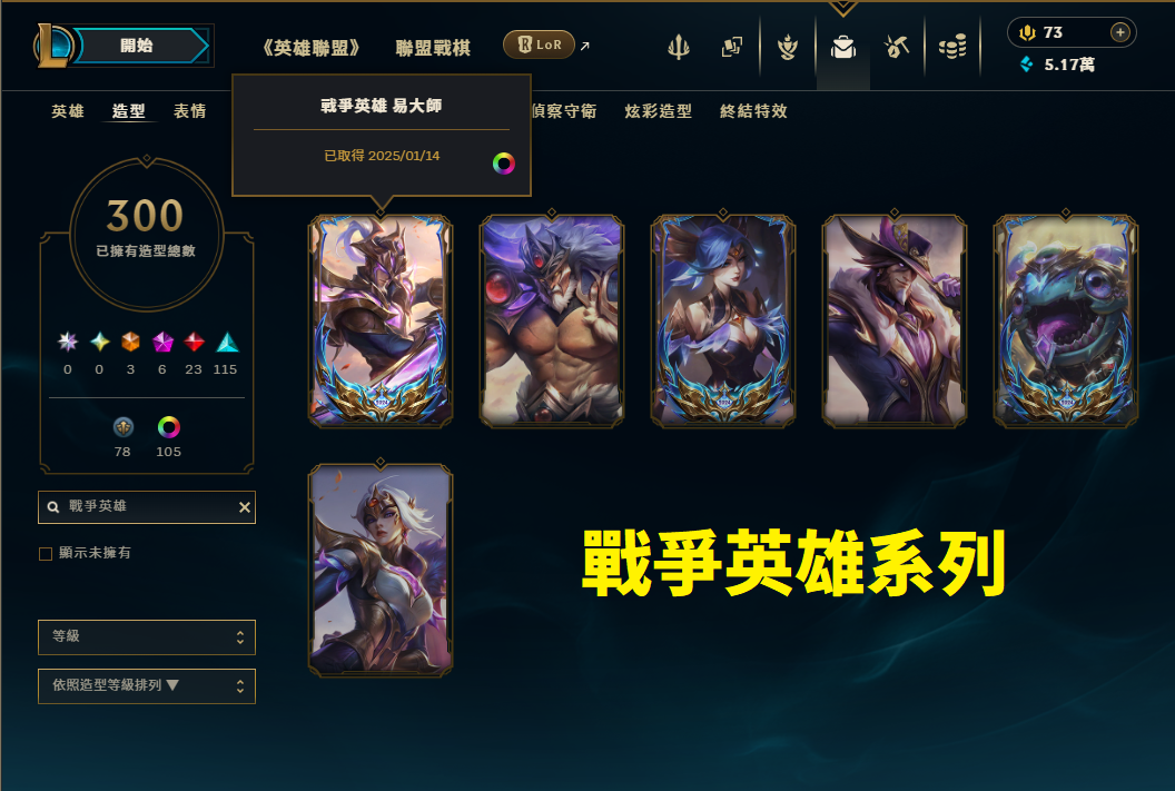 帳號 菁英+宗師+大師頭像 / 造型300個 + 神話x6 + 全英雄