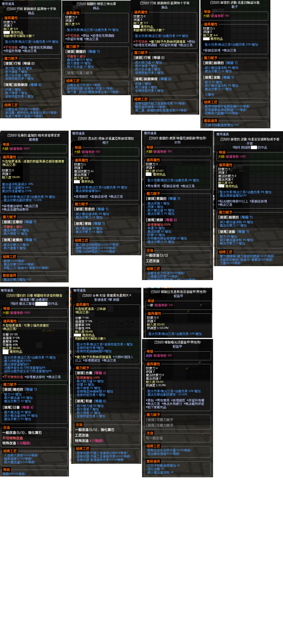 衝射20、決意16夜曲14、輕靈靴