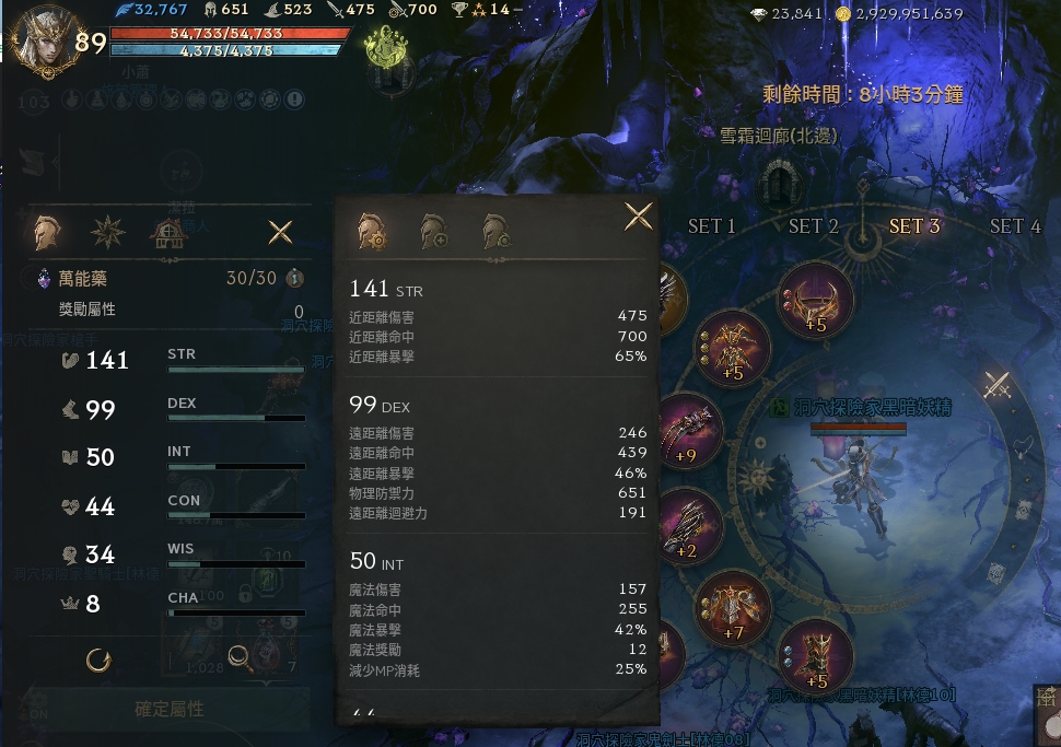 【素質】:等級89.16%、血量54733、攻/命475/700、PVP604/841、防/魔防651/523、減傷/PVP減傷257/72、暈命/抗暈67/176%