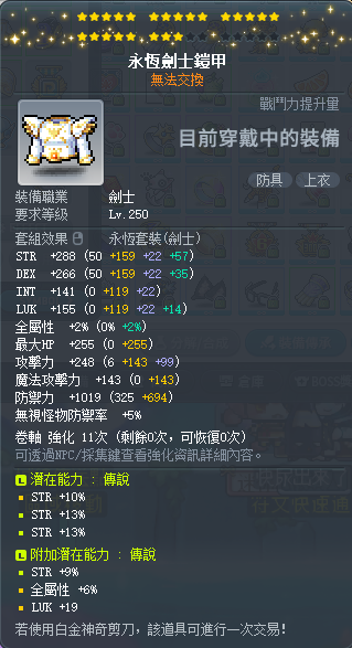 道具 【永恆劍士鎧甲】 23星36%力附加15%力全B卷永恆劍士鎧甲 / 250等防具 / 劍豪 / 蓮