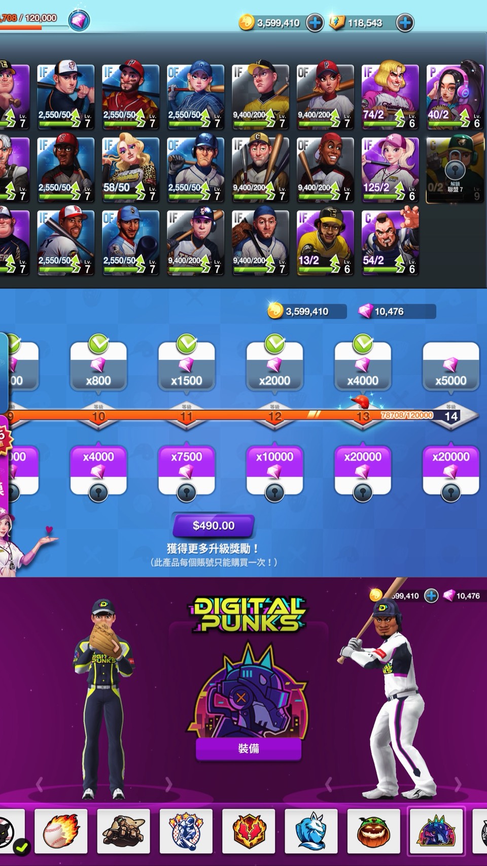 角色卡14等有7張 精英碎片還有11萬 可隨時升兩位到14等