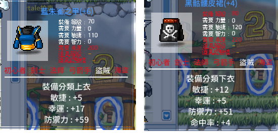 【盜賊上下衣39屬】 上衣22屬下衣17屬共39屬 都衝60%捲