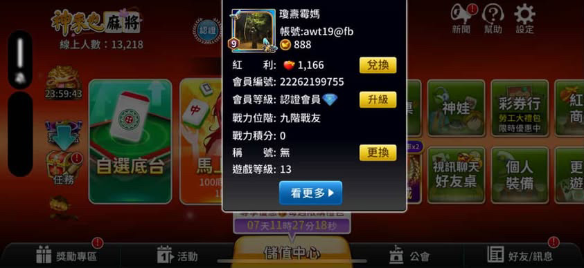 【13等】 裡面888金幣沒在玩了希望找人接手 FB綁定 🉑換綁