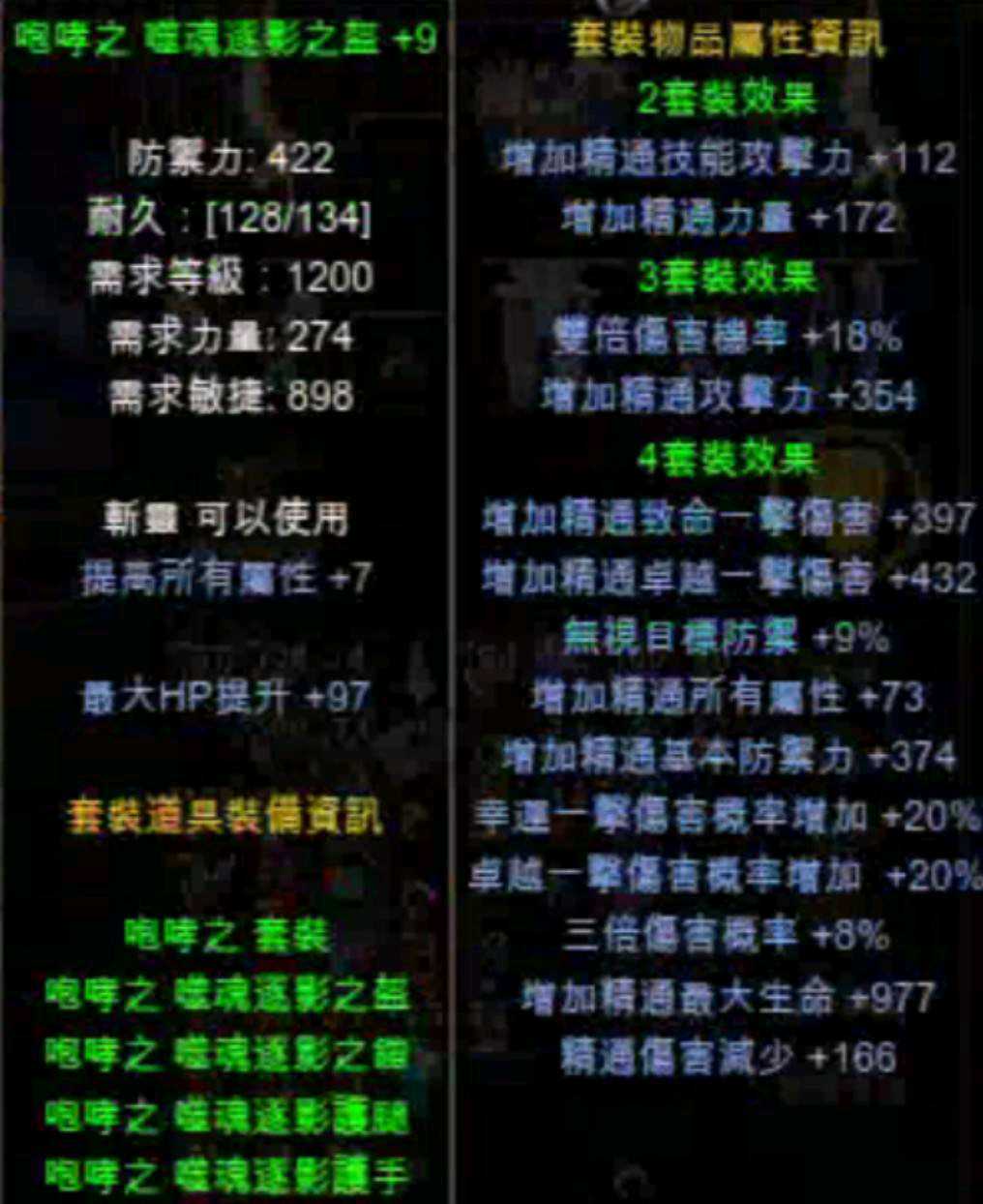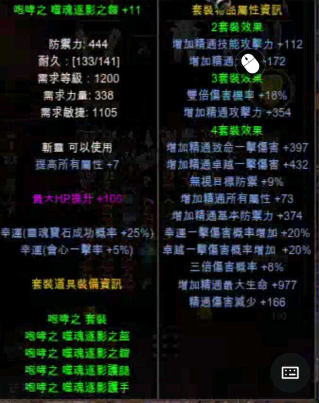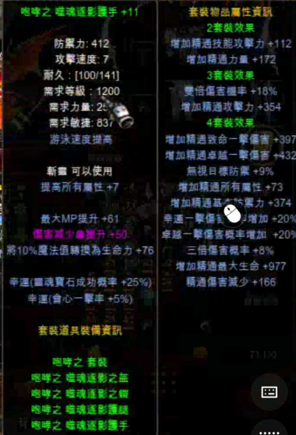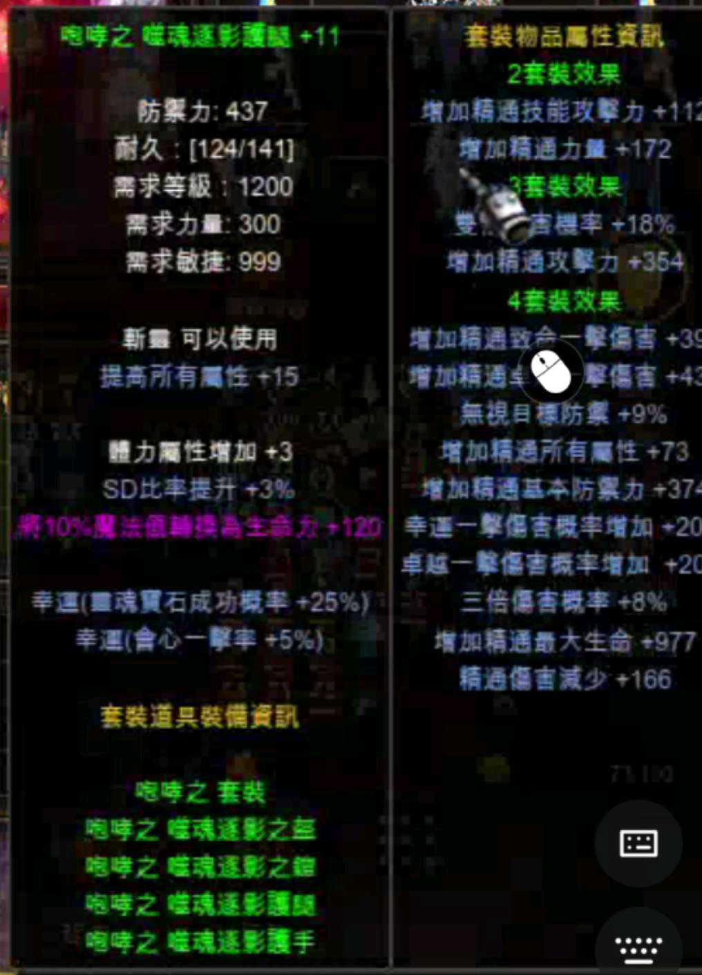 (盔+9無幸/+11鎧幸運/+11手幸運/+11腿完美屬)