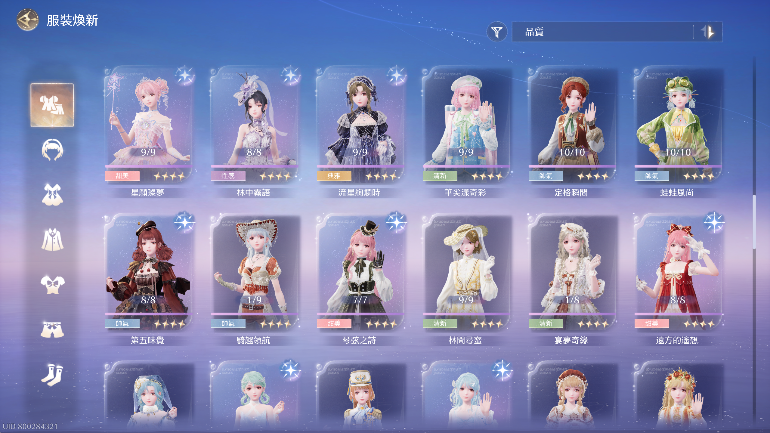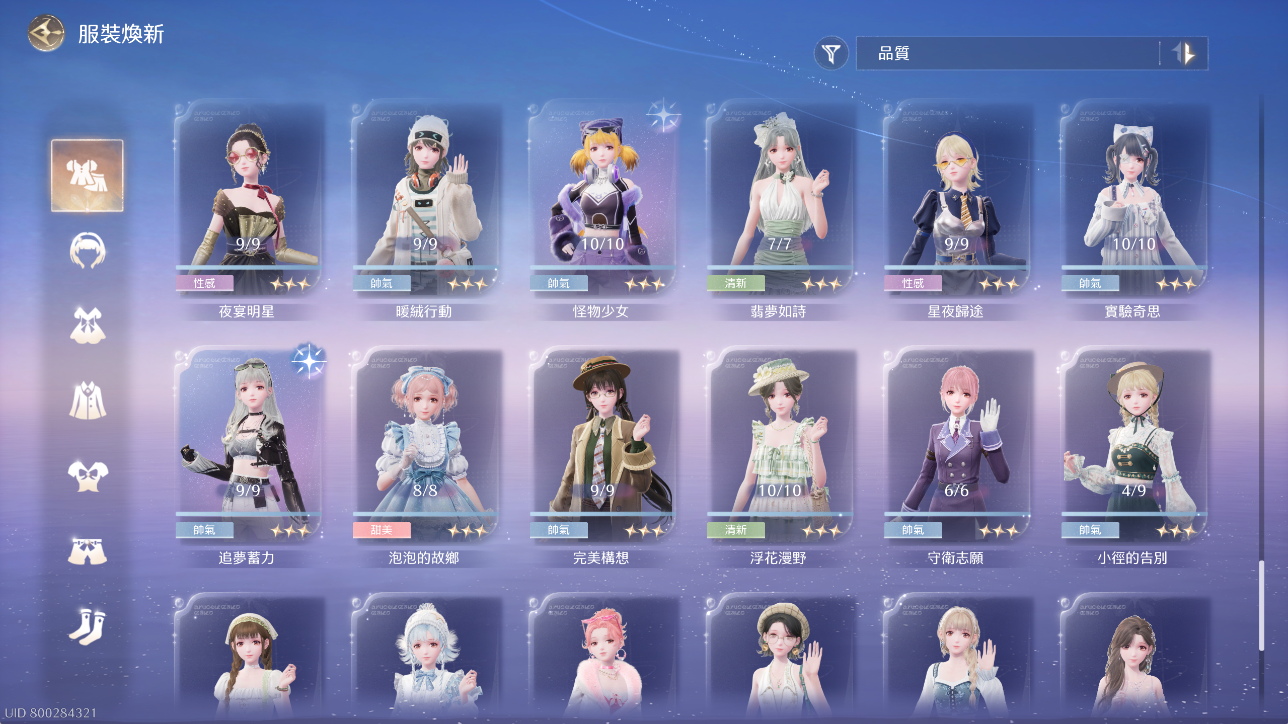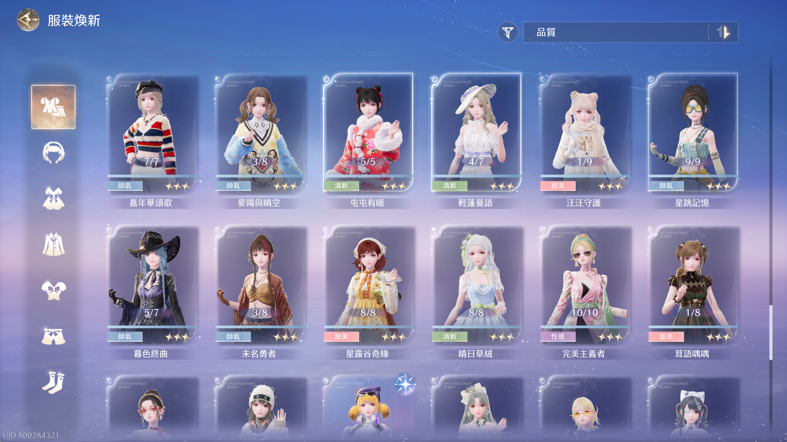 常駐套4套除了群星套差1滿進,其餘3套全滿。