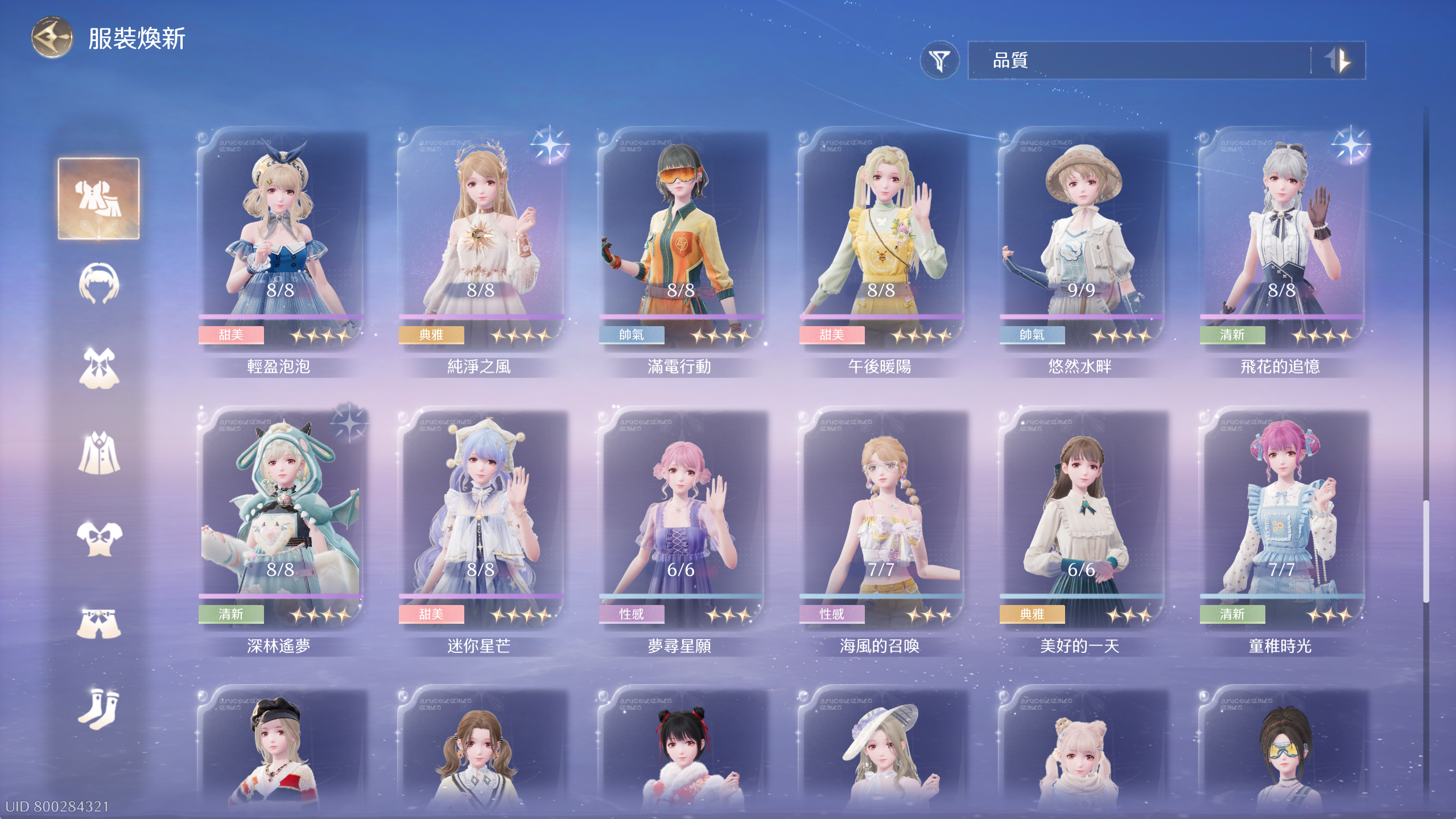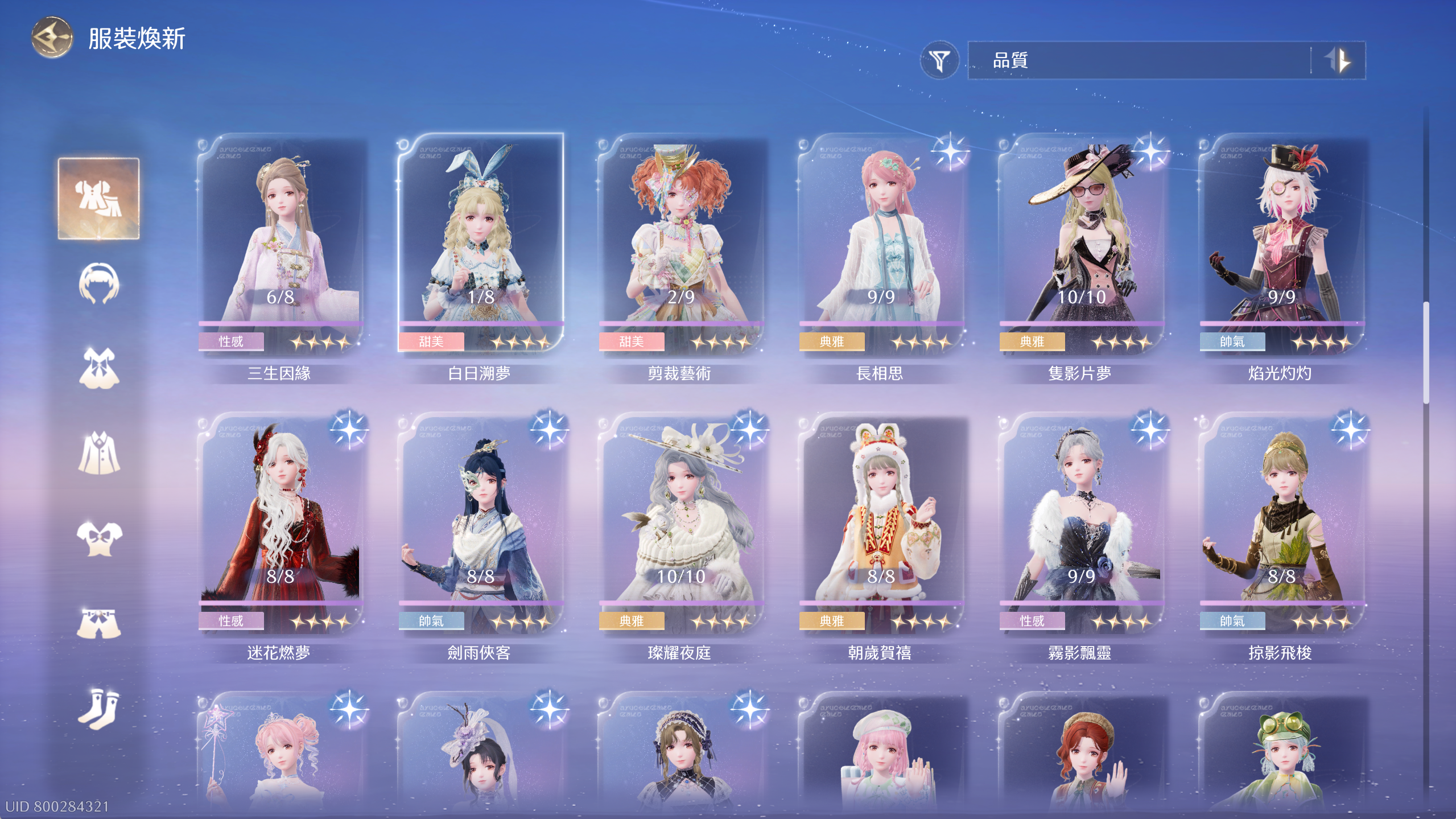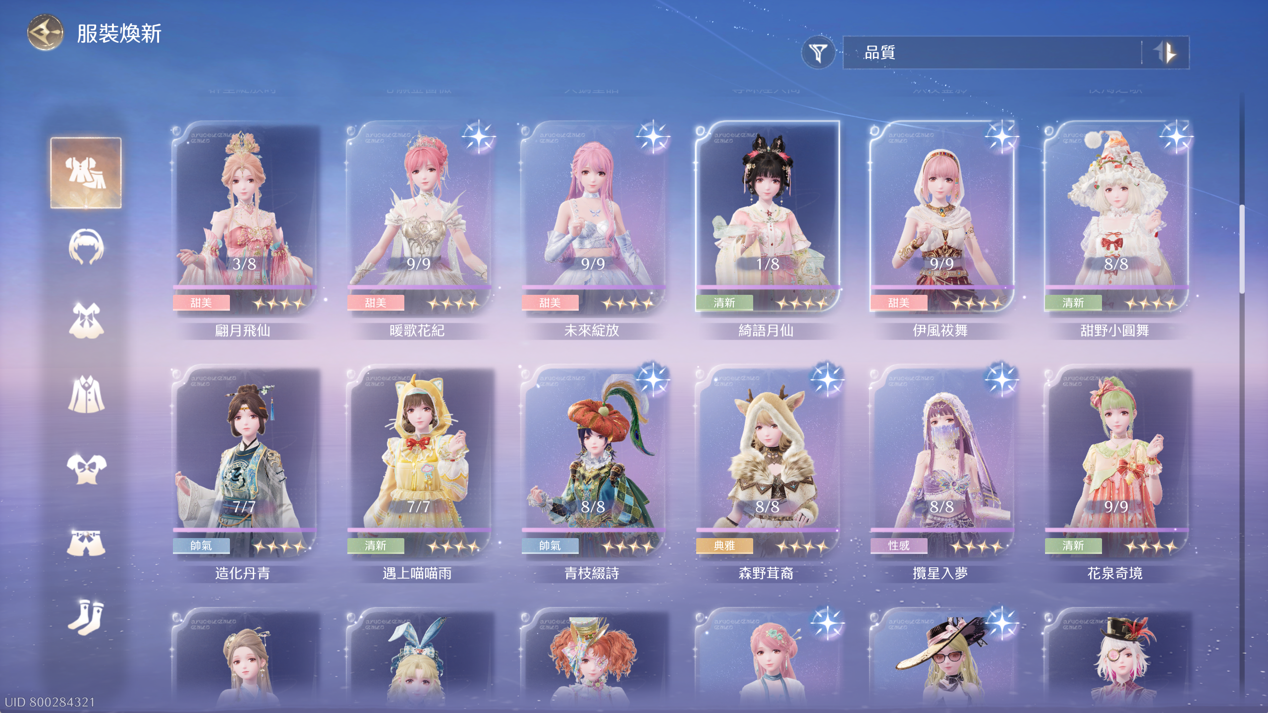 常駐套4套除了群星套差1滿進,其餘3套全滿。