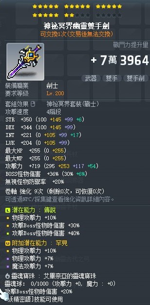 主潛能:70%BOSS10%物攻(次頂主流主潛能)