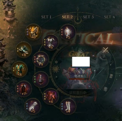 +5祝世界樹頭盔(魔111)、+5祝世界樹手套(速111)、+0祝深淵香爐、+2退色歐西戒指(防111)*2