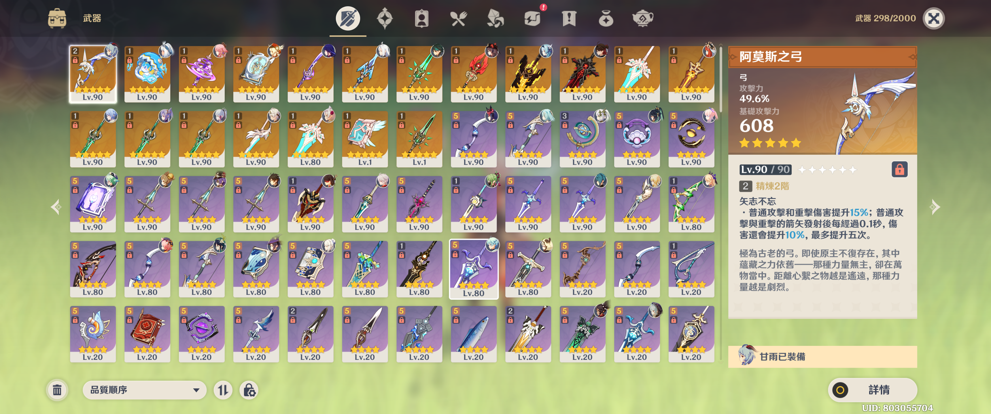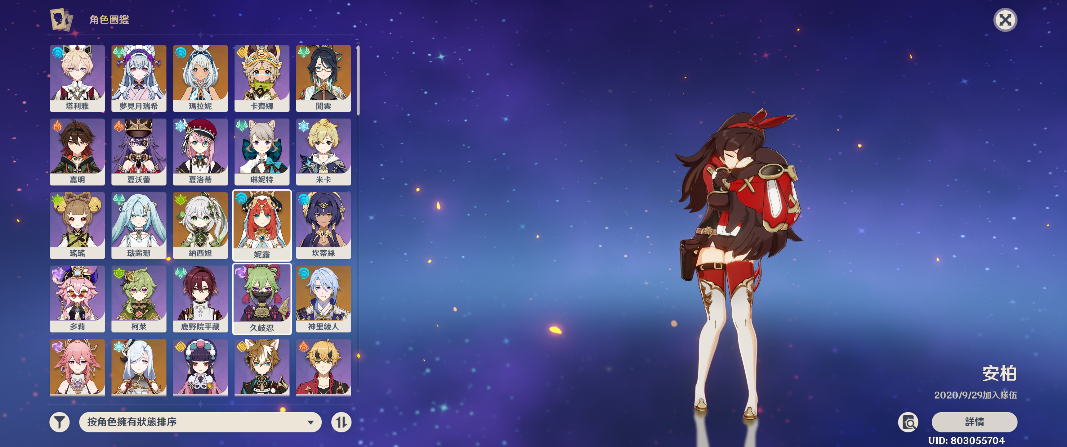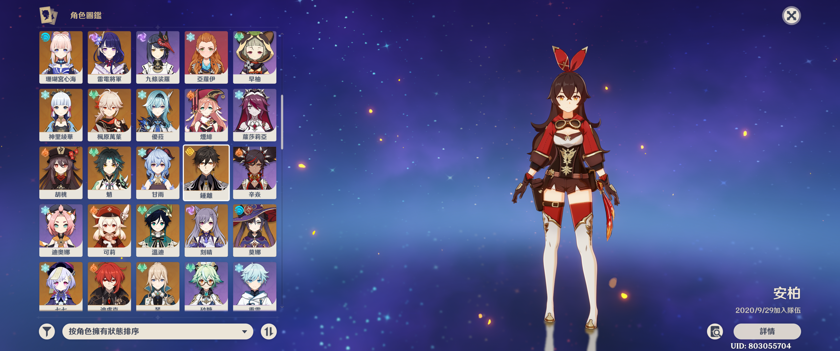原神21雷神11胡桃11申鶴岩神草神風神萬葉神里兄妹02甘雨02魈01瑪拉尼01尼露01八重 心海閒雲優菈可莉夢見月2命琴3命迪盧克三命莫娜共40金左右。