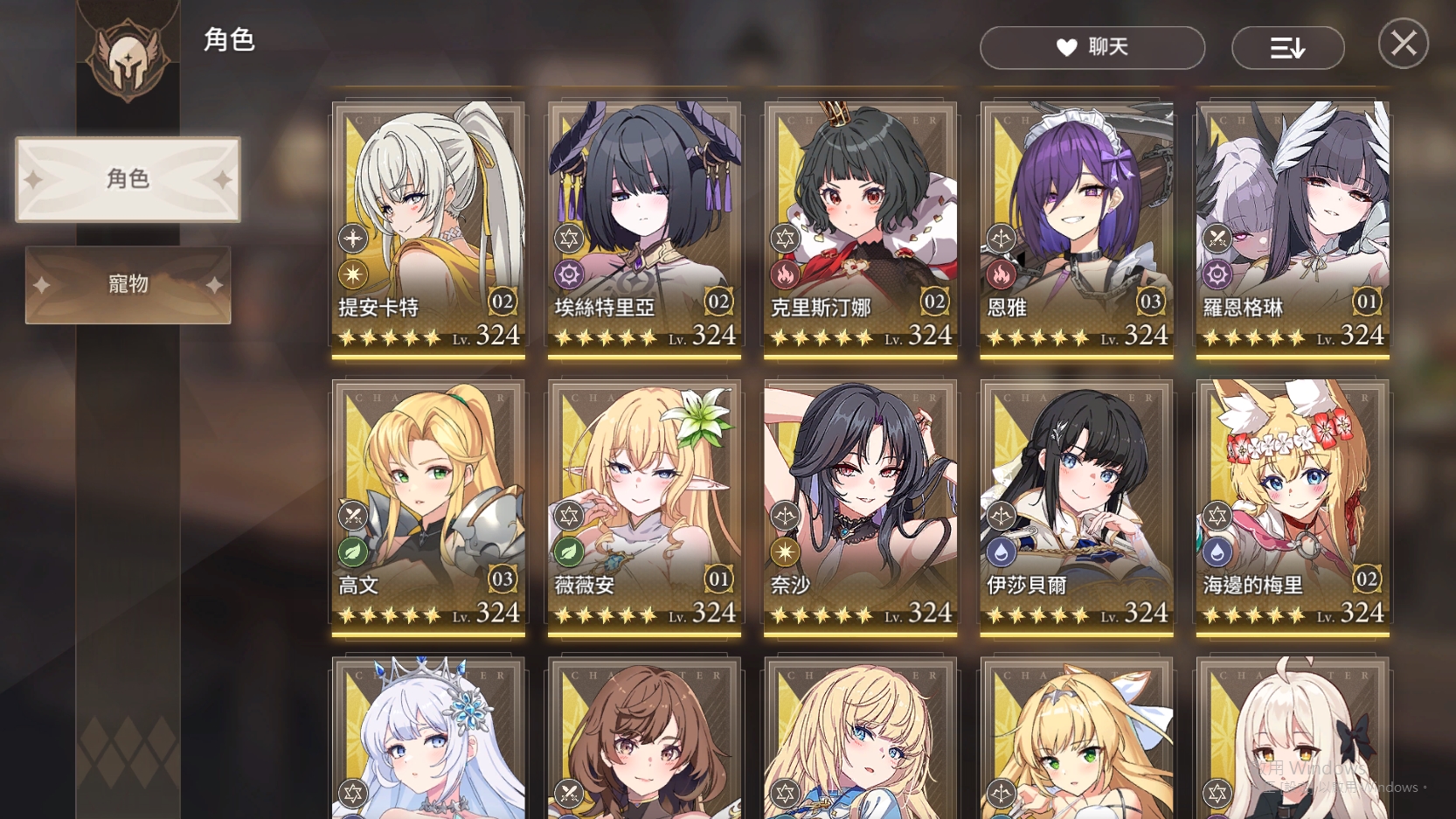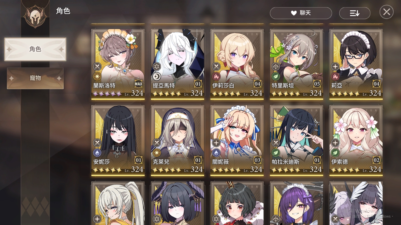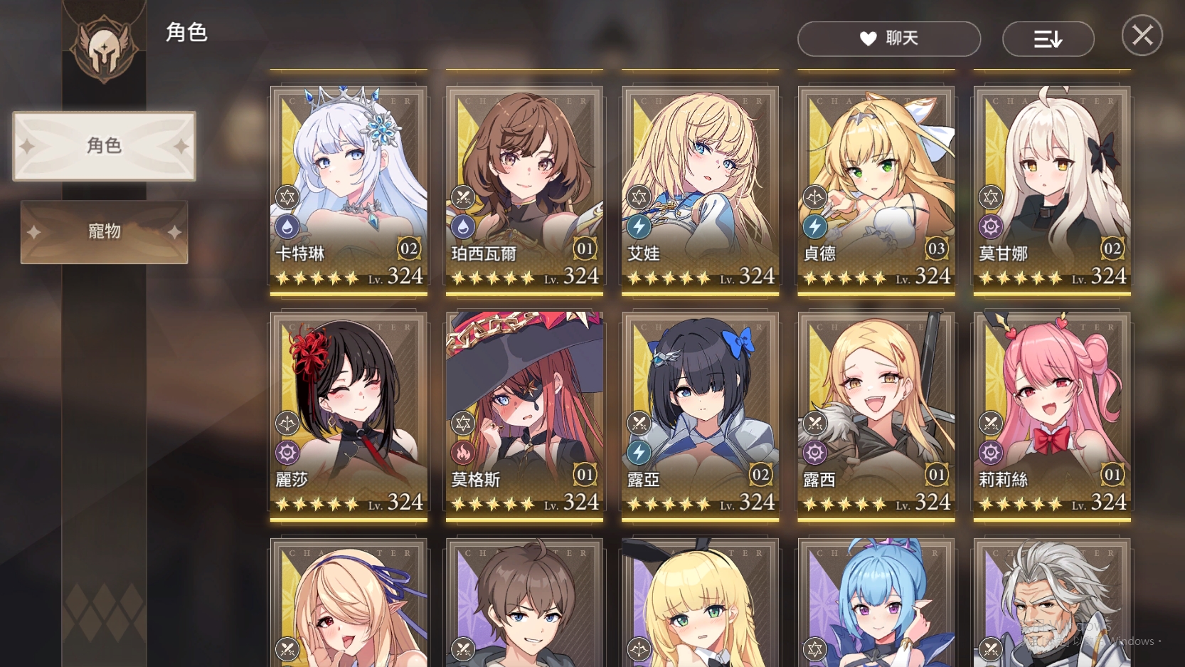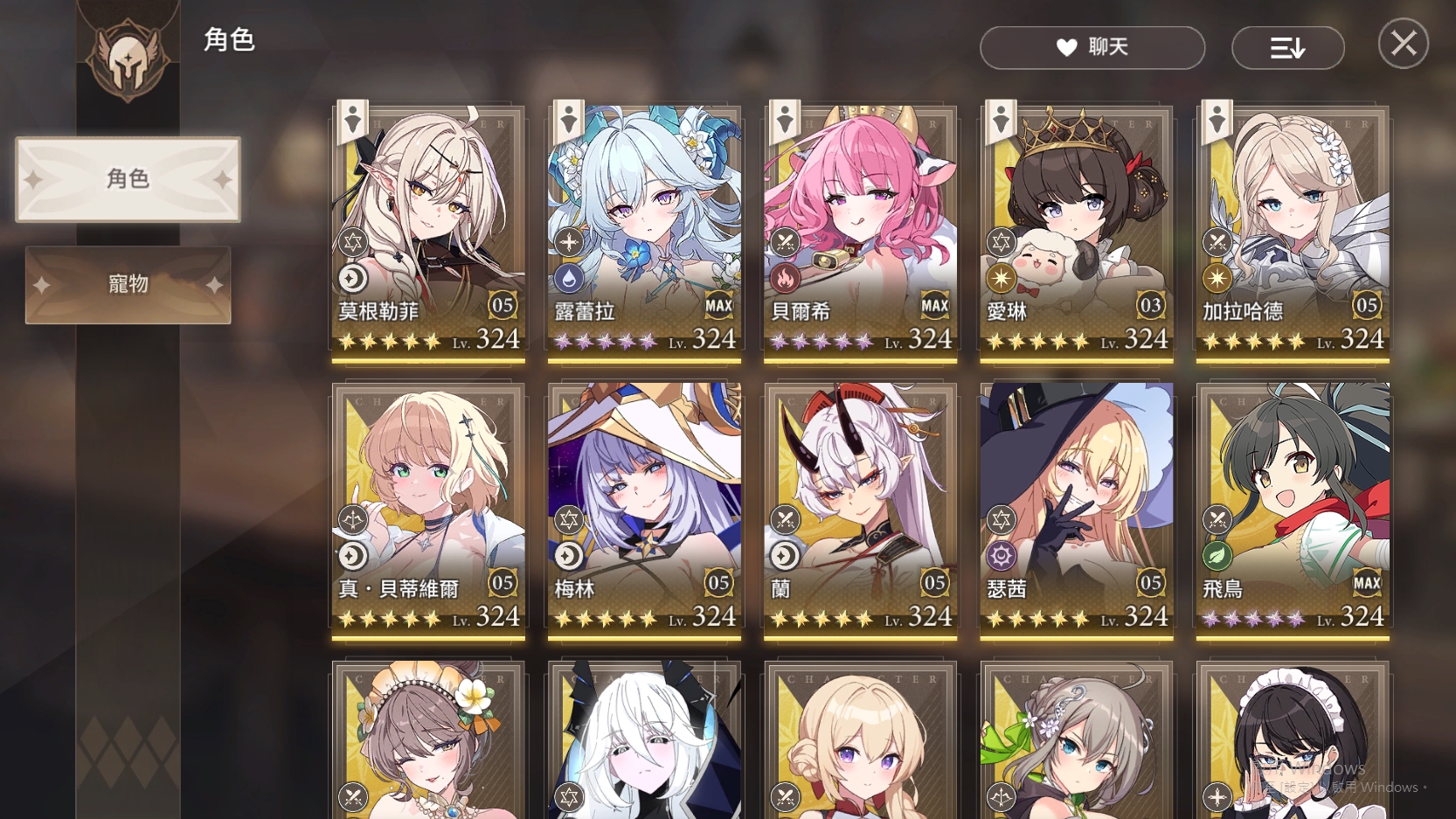 99等、角色328等