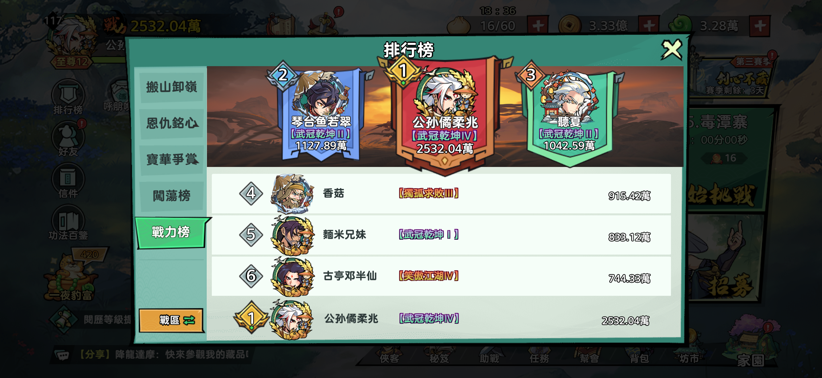 角色只差一個沒有(無名蟬ㄕ),至尊12快13,絕對夠後面活動,目前都還有在儲值