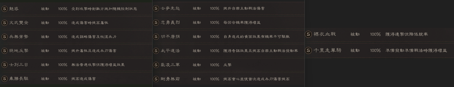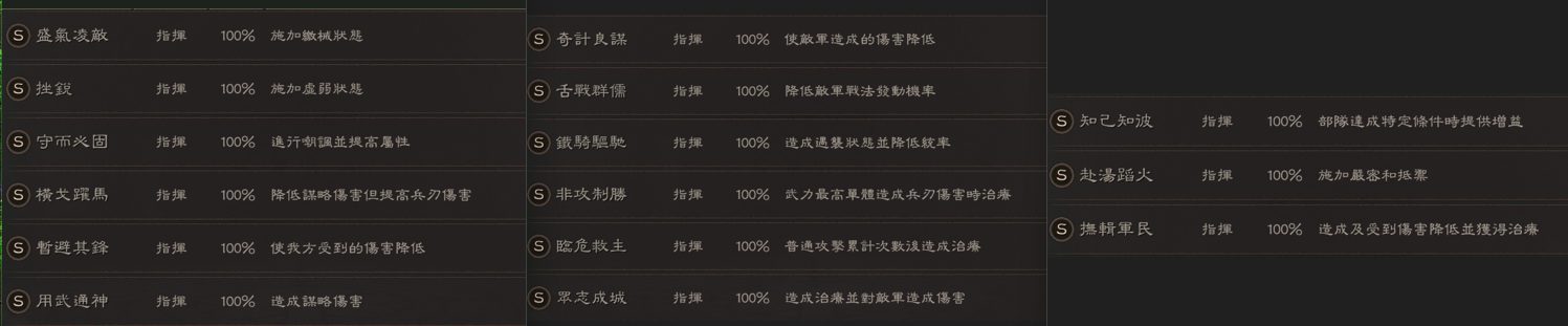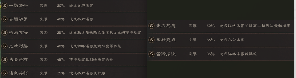 退坑 三踩踏 三好學 兩靈動 一援助 一出奇 四件雙特技