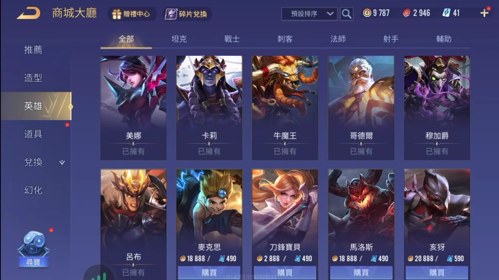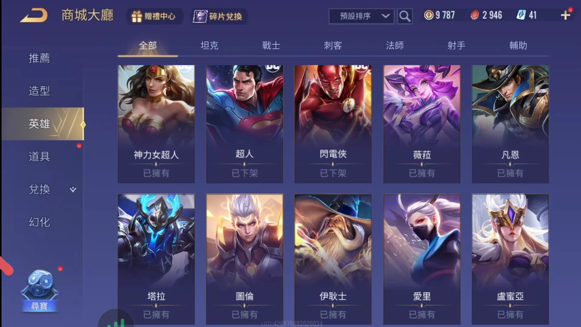 傳說對決台服帳 34英雄34造型 呂布 神奇女俠 入坑號 無綁定 奧義多套90 garena登入 安卓蘋果都可以