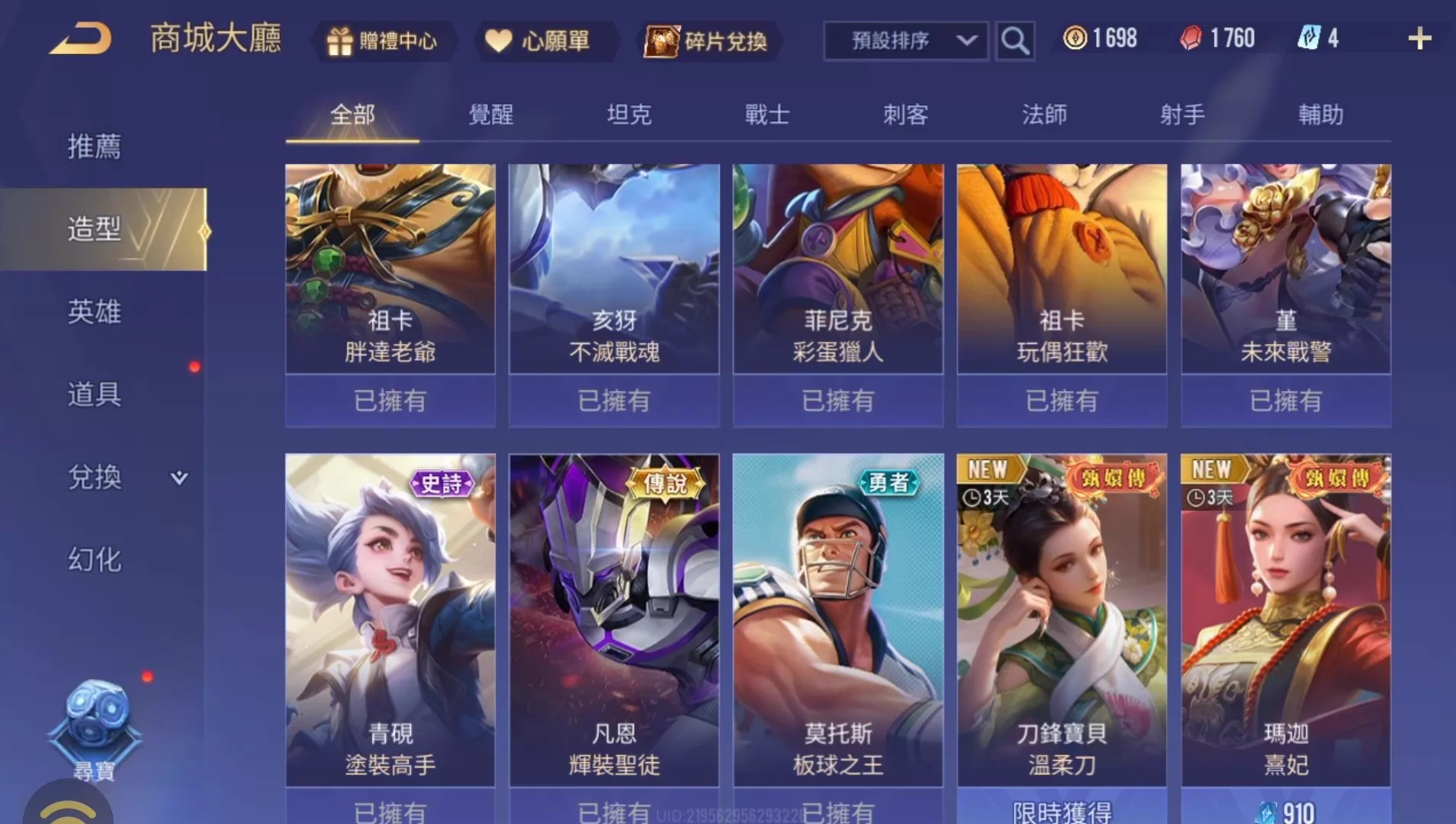 傳說對決台服帳 28英雄39造型 閃電俠 呂布 海倫 多套90奧義 garena登入 無綁定帳可換綁改密 初始號 入坑號 安卓蘋果都可以 回歸號