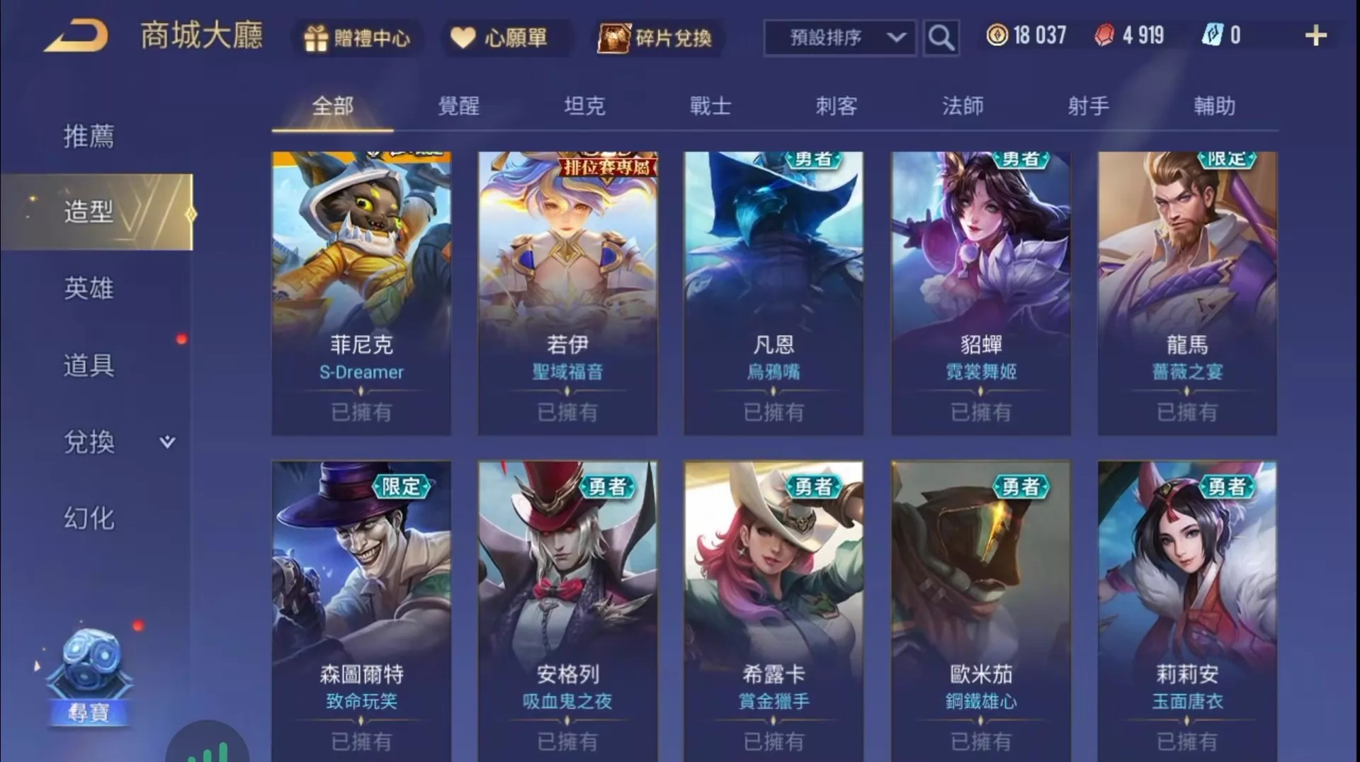 傳說對決台服帳 27英雄27造型 小醜 兩套90奧義 無綁定帳 初始號 garena登入 安卓蘋果都可以