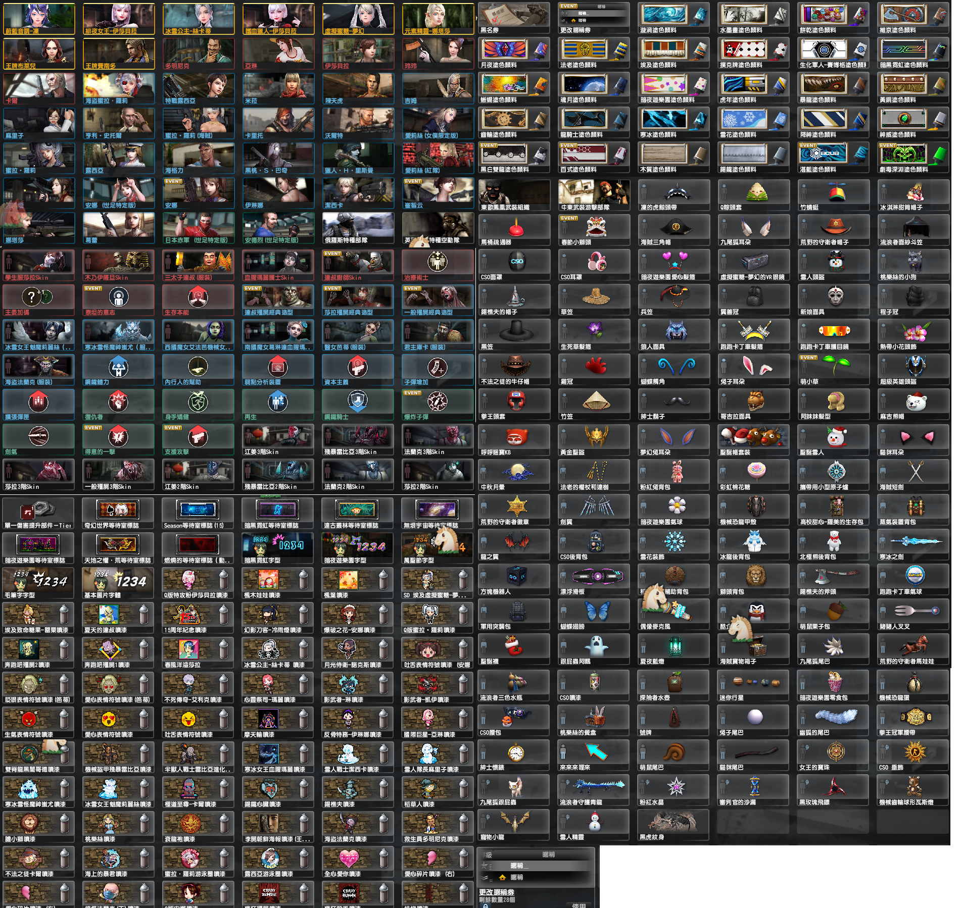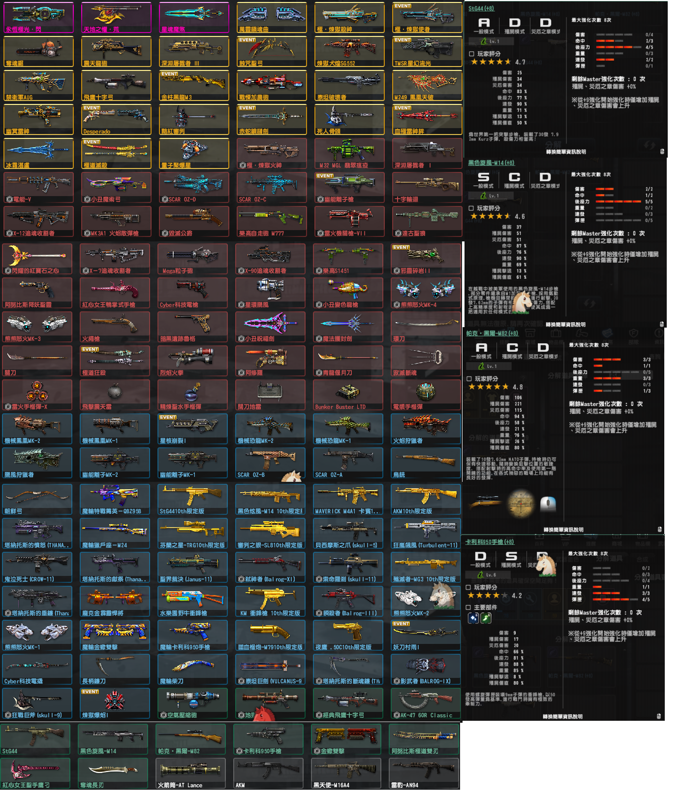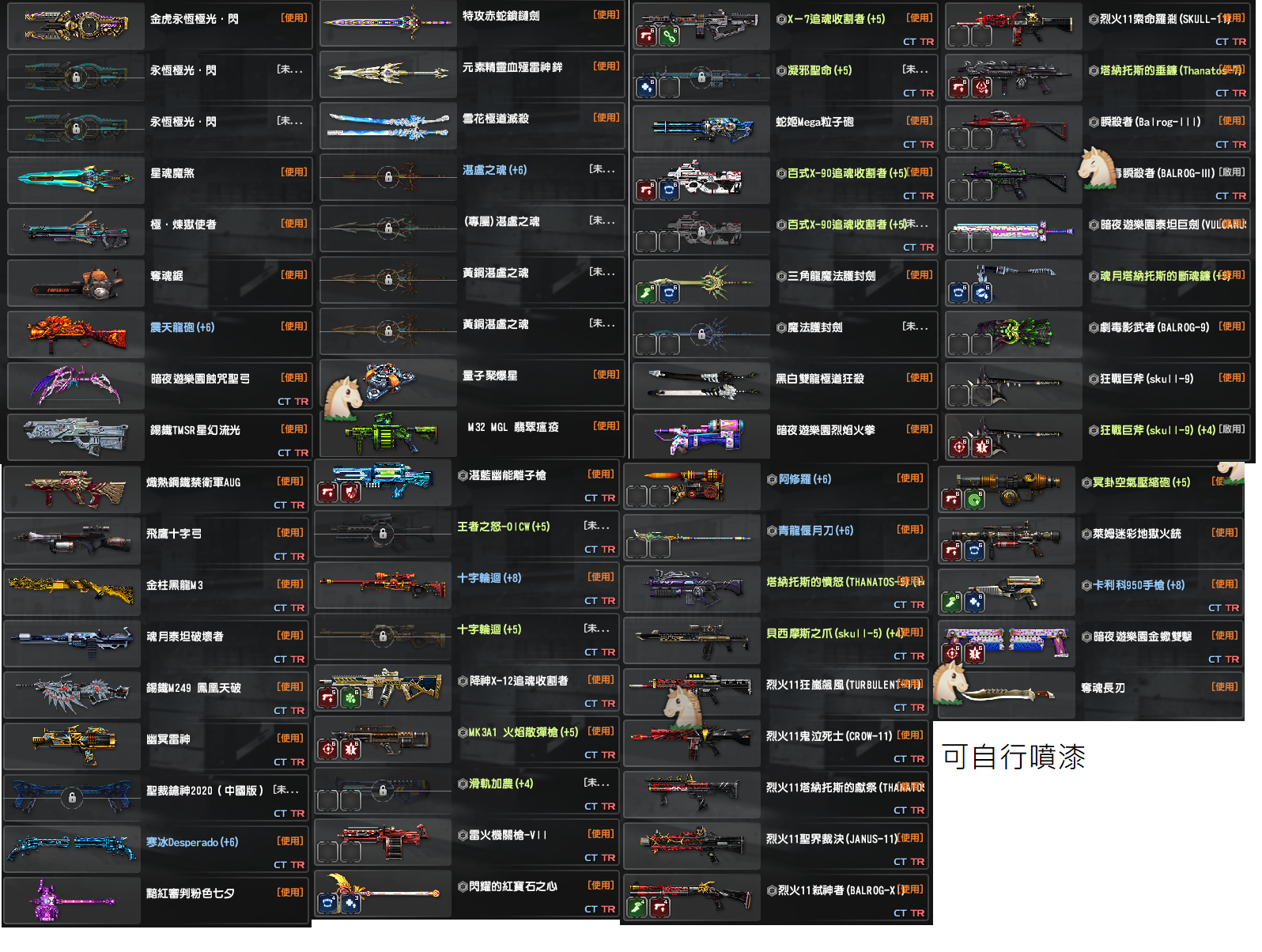 更名券28張/紅利4w5以上 部分武器有噴漆 完美強化+8槍