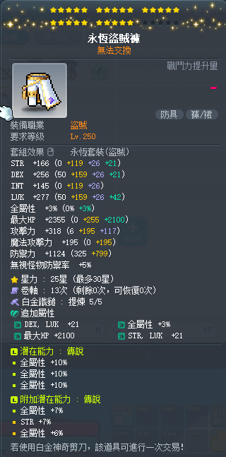 【永恆盜賊褲】 傑諾雙傳25星30%全永恆盜賊褲 附加76全大雙 白5全b~