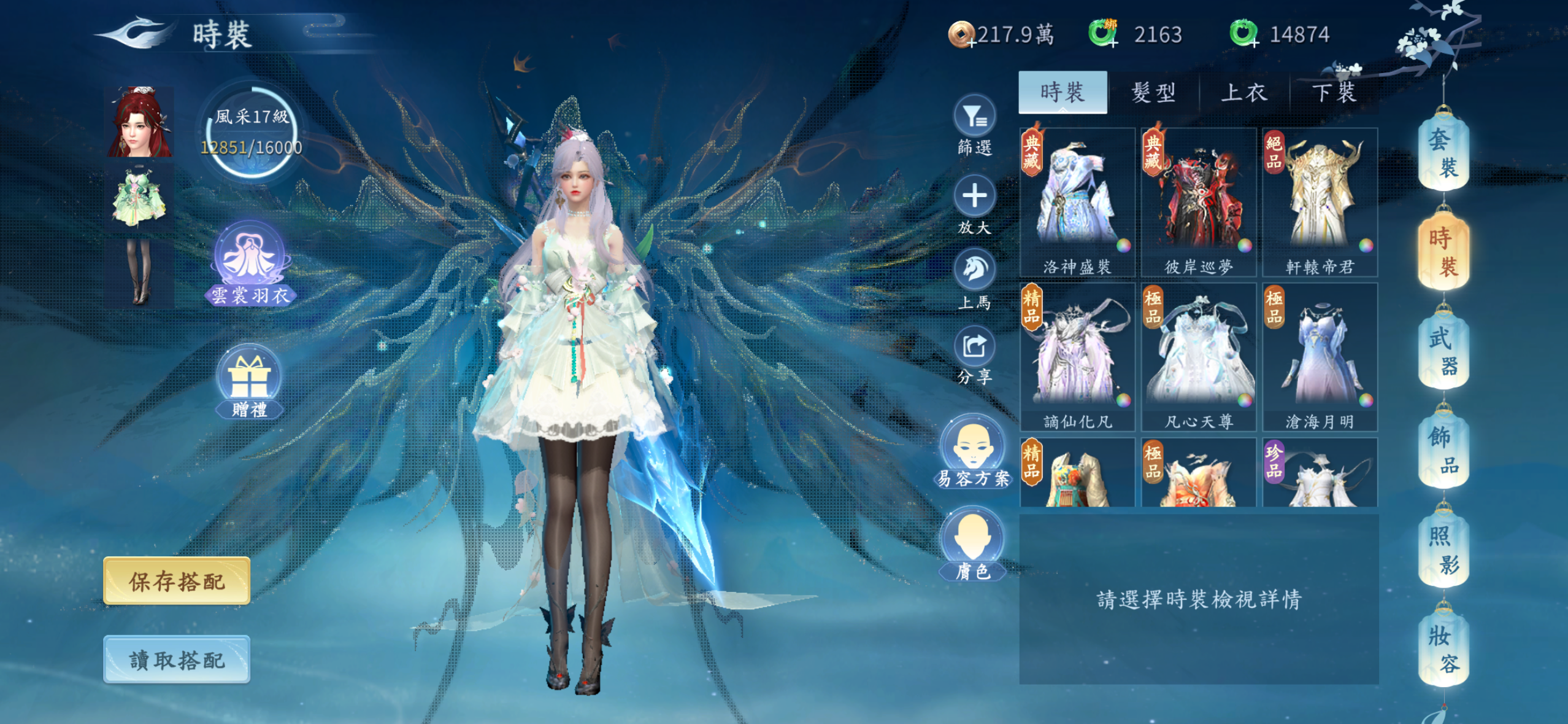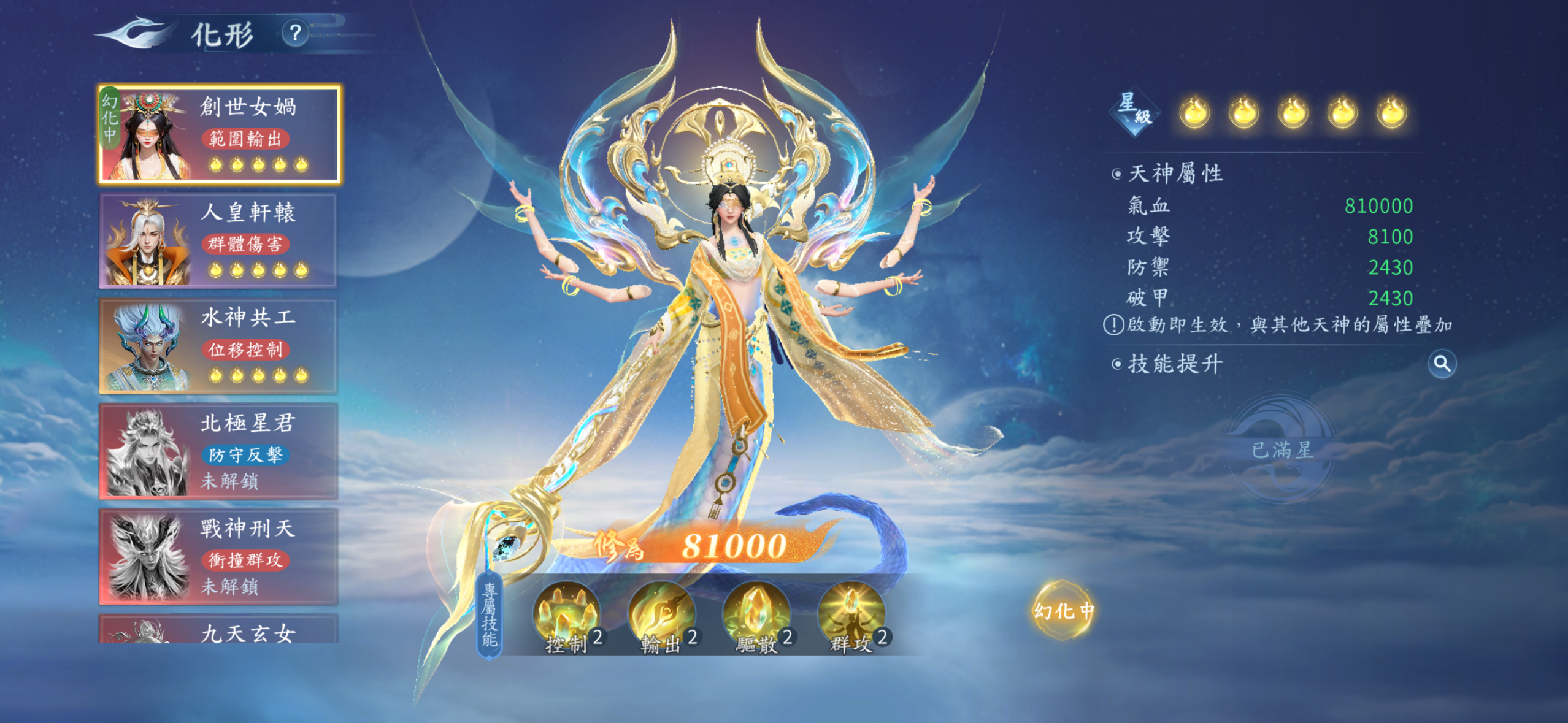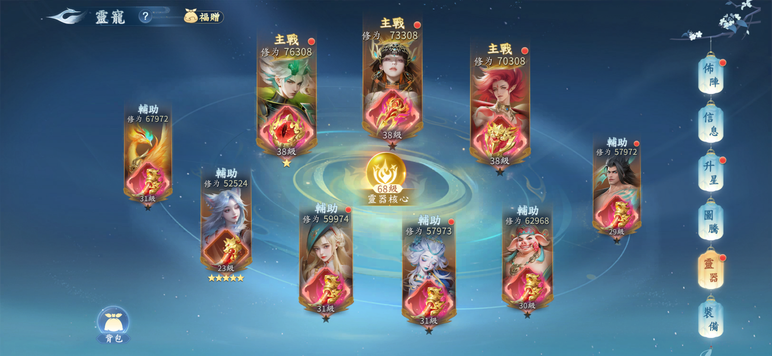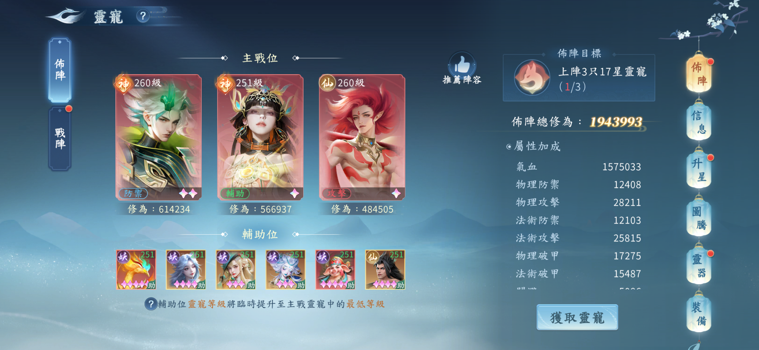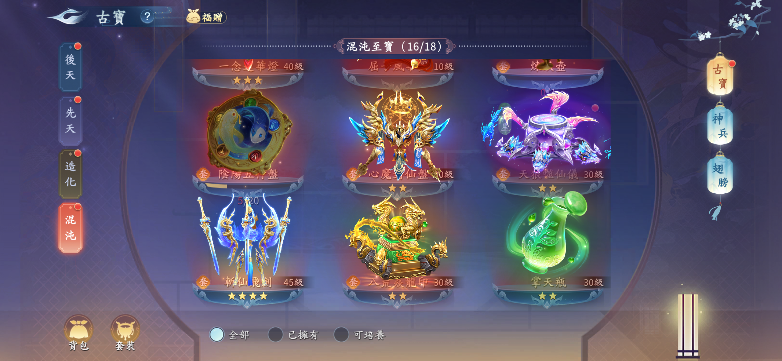 雙絕世神魂.雙神獸.神兵翅膀都有.天神女媧滿級.兩期時裝都抽滿.坐騎基本上都有了.靈寵靈器3紅絕都有