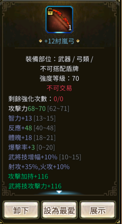 +12弓.+9頭盔強3.+12鎧強3.+11內衣.+8內衣強3