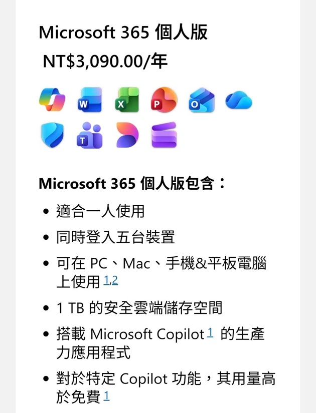 🔥1TB 的 OneDrive 雲端儲存空間。