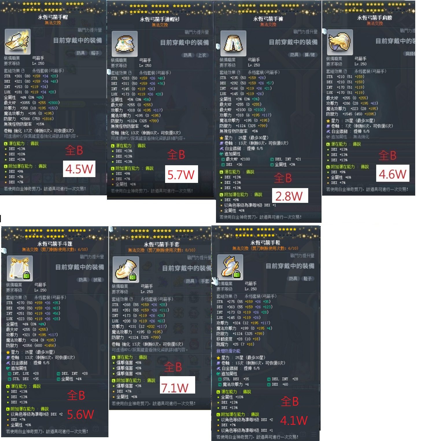 永恆弓箭手帽 4.5W 25C全B白5雙傳主次附加977