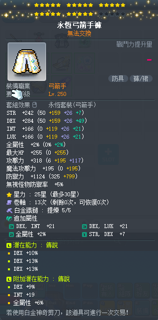 【永恆弓箭手褲】 雙傳25星36%敏永恆弓箭手褲 附加96敏大雙 白5全b~