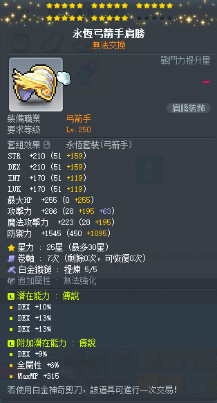 【永恆弓箭手肩膀】 雙傳25星36%敏永恆弓箭手肩膀 附加96敏大雙 白5全b~