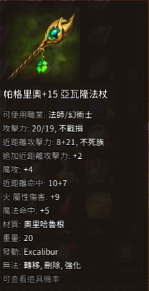道具 帕格里奧+15 亞瓦隆法杖 (35%魔法發動率)