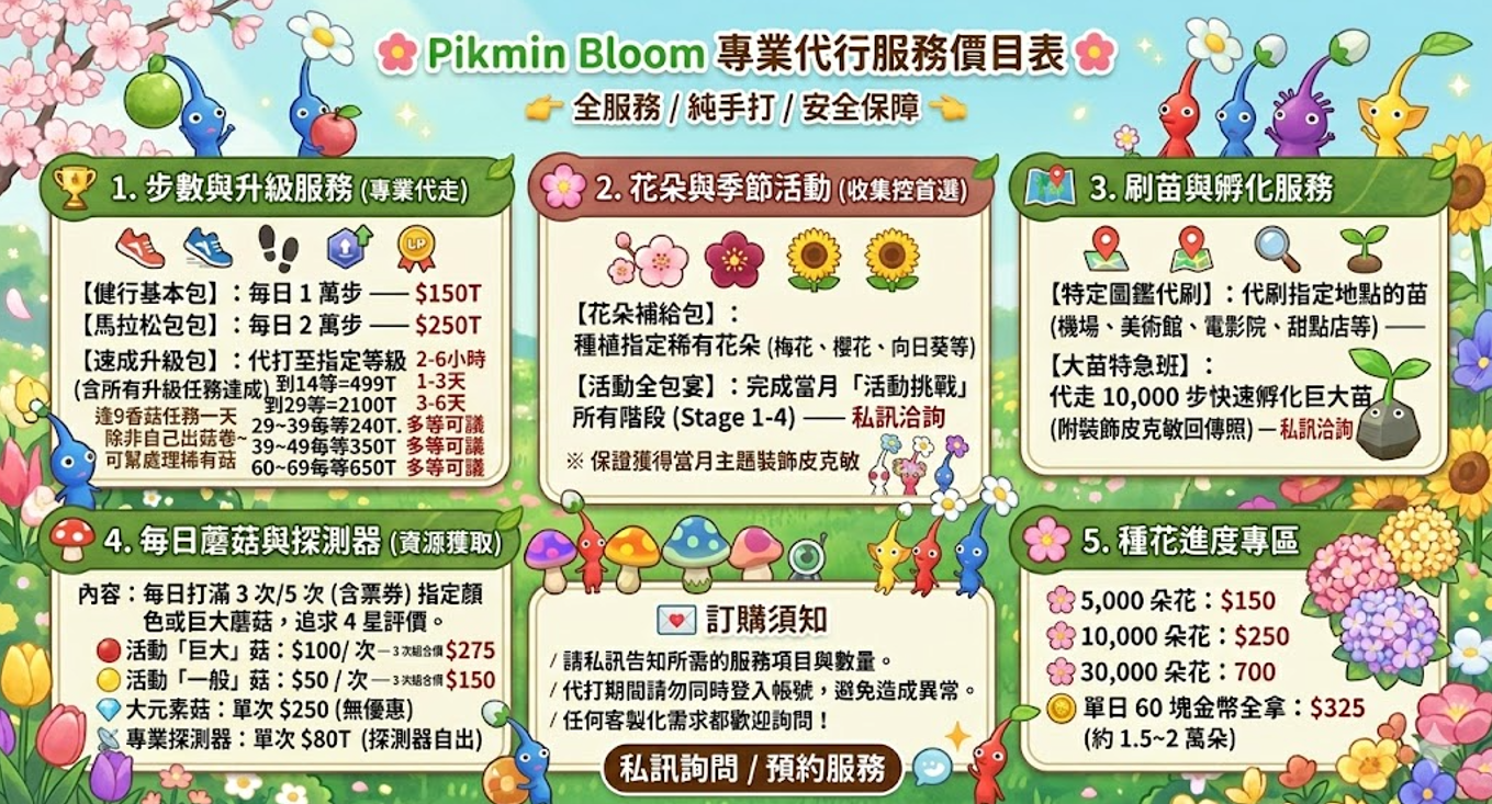 🌸 Pikmin Bloom 專業代行服務價目表 🌸