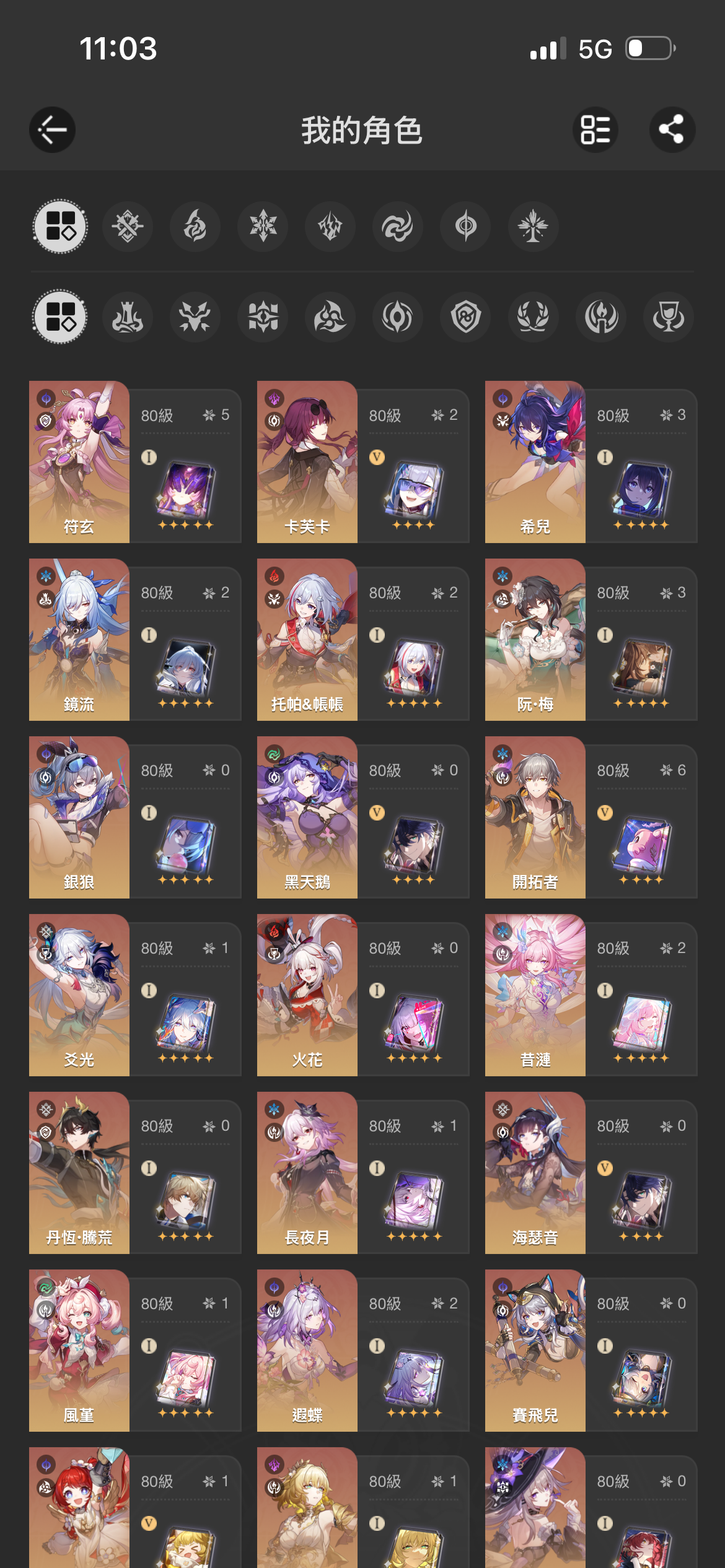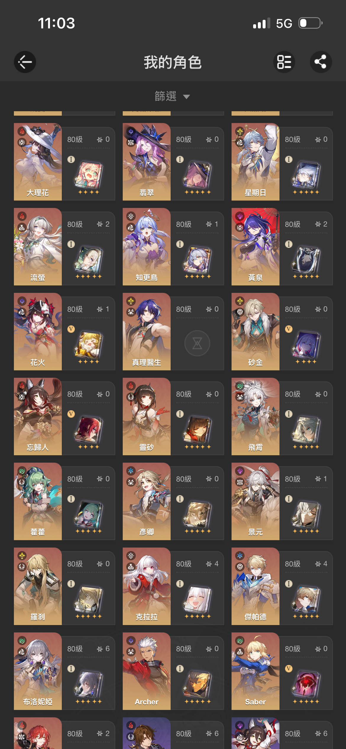 有所有限定活動道具、昔漣弓、頭像、桌布,角色齊全。