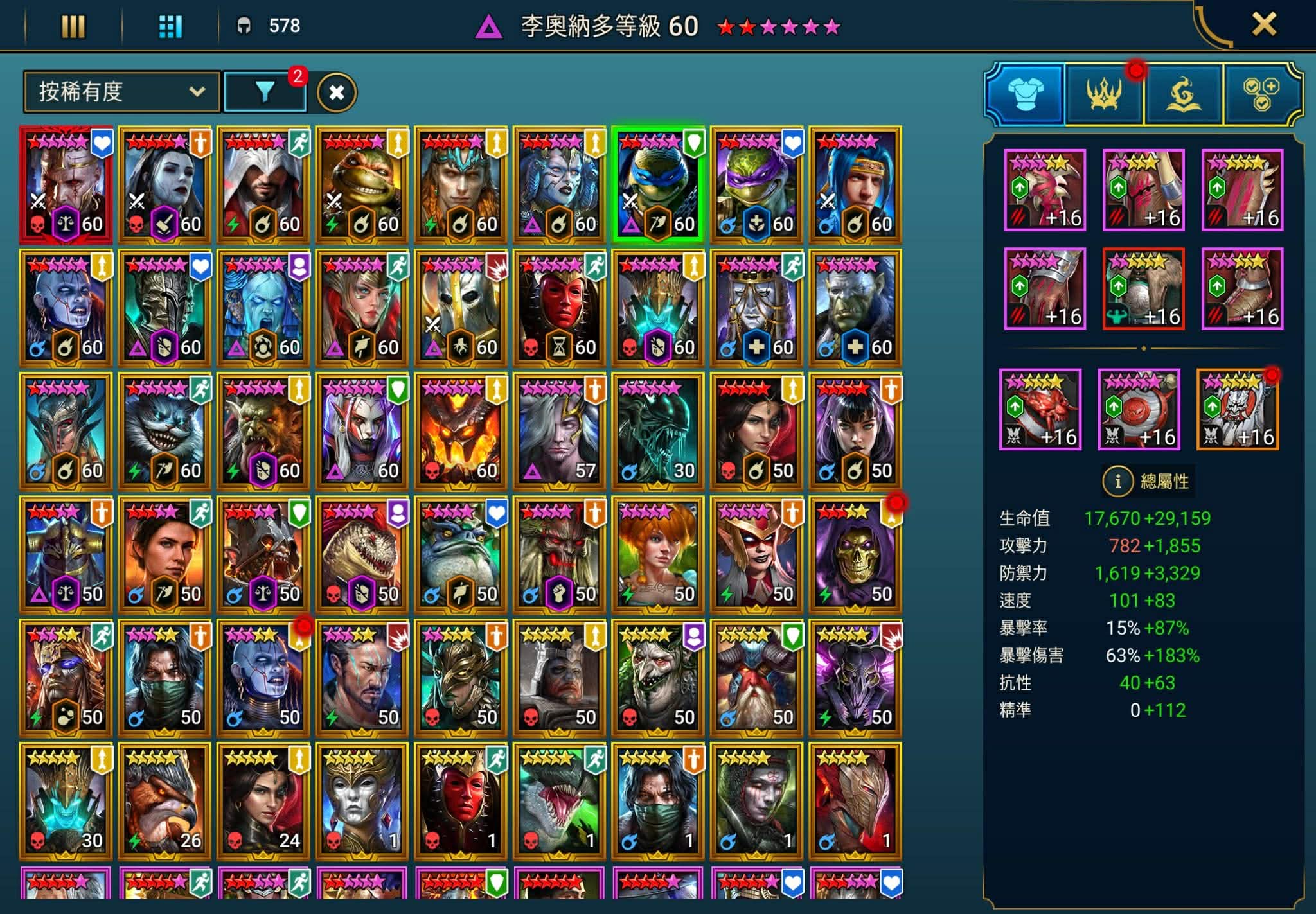 瑪麗亞、三龜(藍黃紫)、黑雨、納瑪斯*2、新娘、權王、幽靈女王、柴郡貓、化身、蓋爸、ninja、悟空…