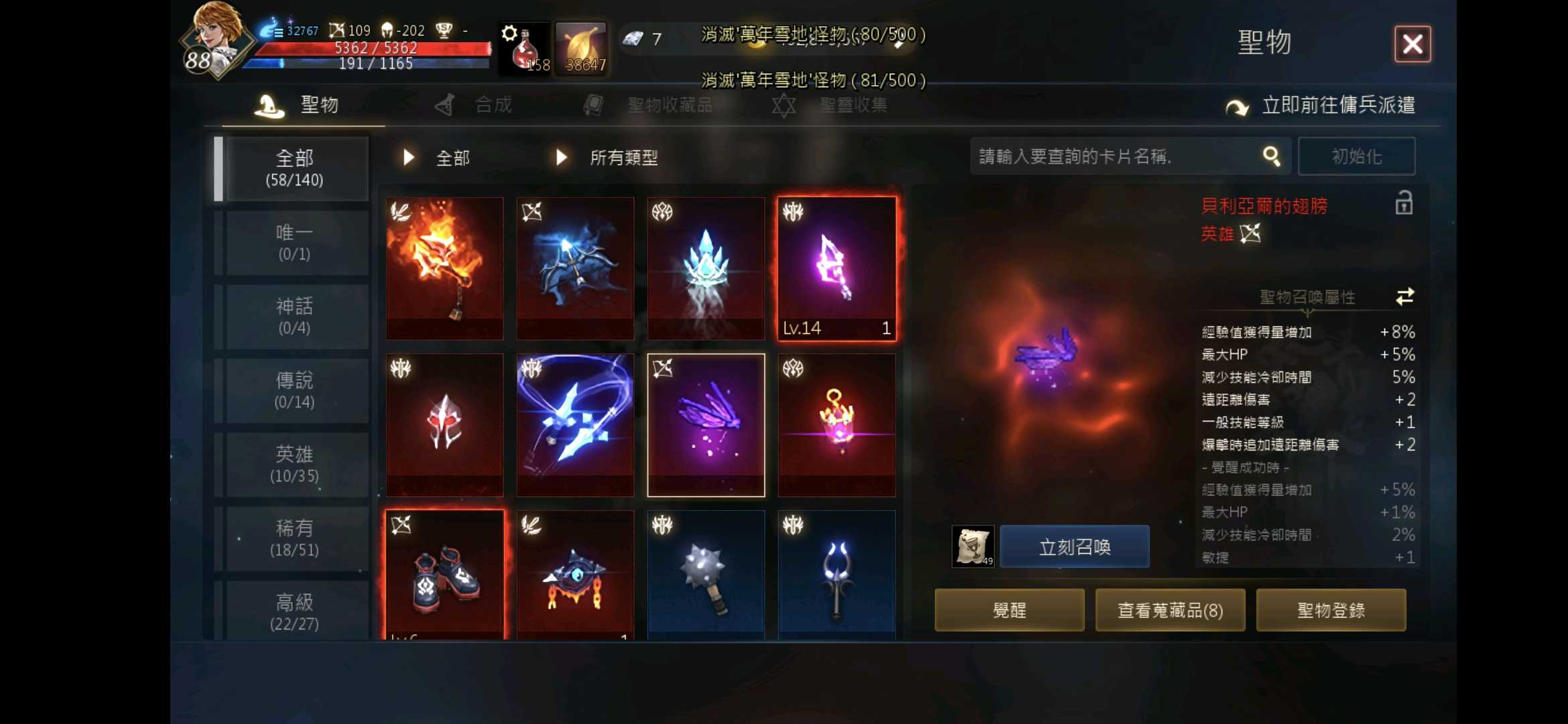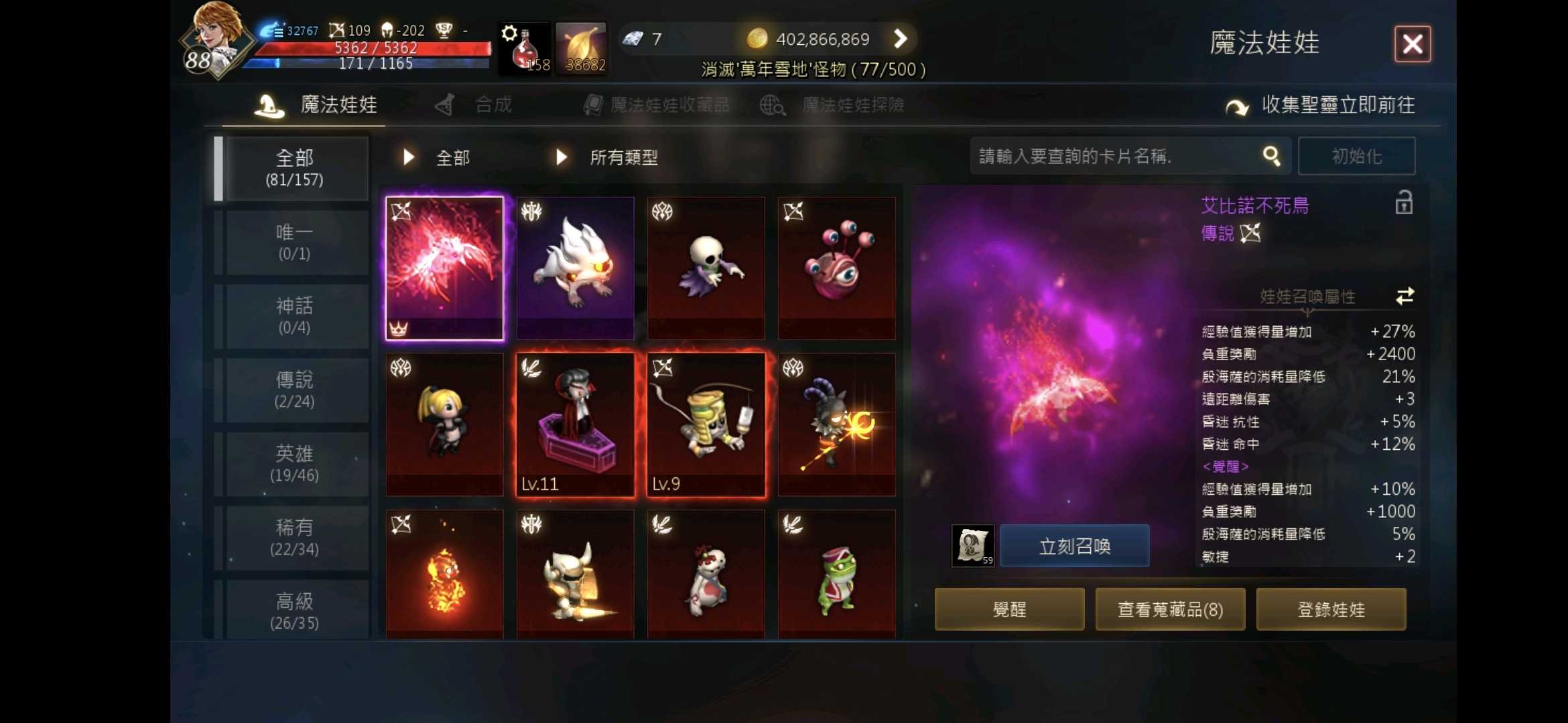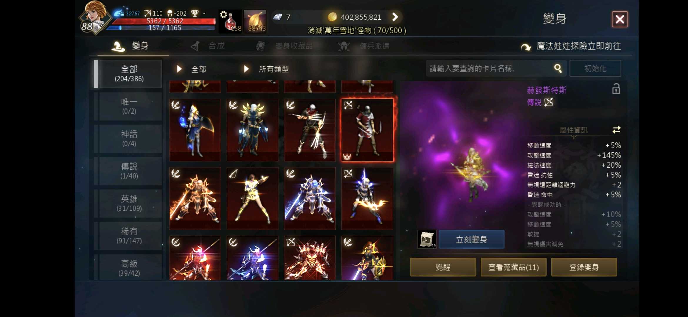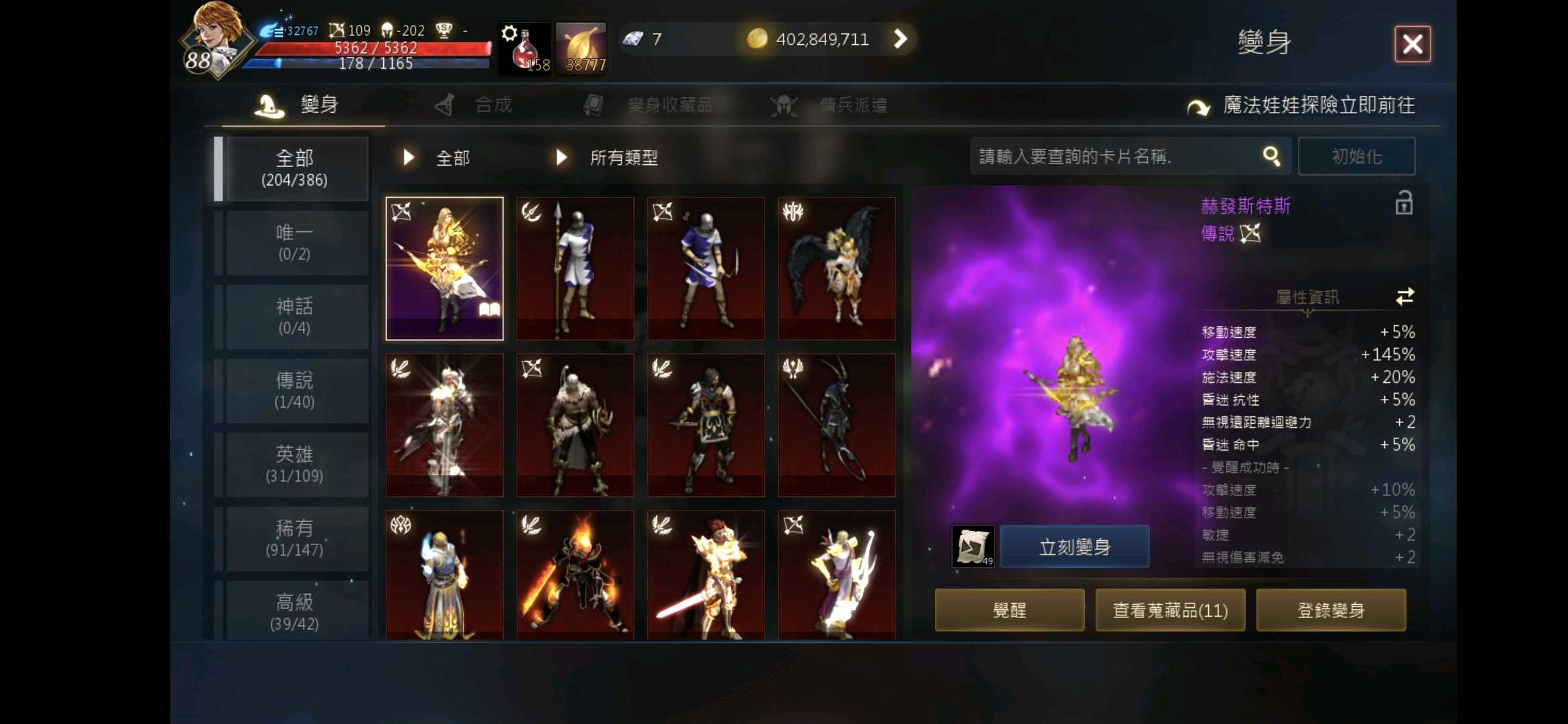 【槍手、88等、賽尼斯】 紫變赫發斯特斯.覺醒紫娃.紅聖,防200初.攻110,回鍋首選,進來看看圖
