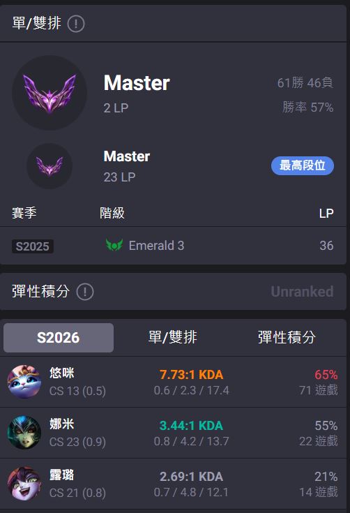 可加錢幫忙打到宗師或是後續活躍也可以談 便宜實惠~