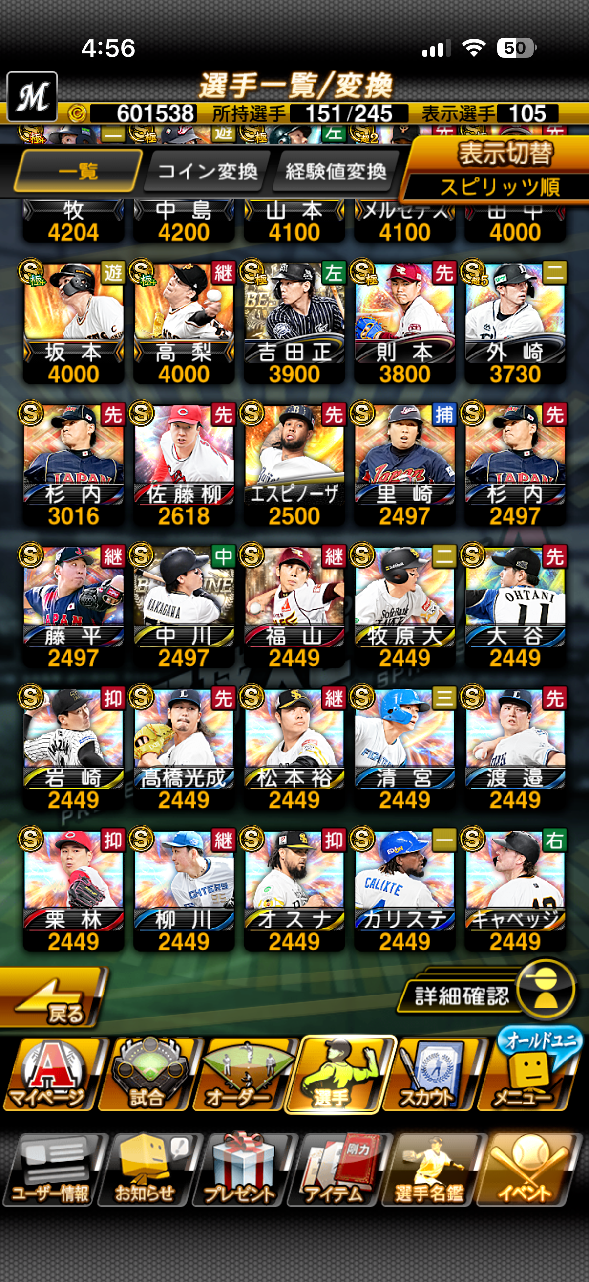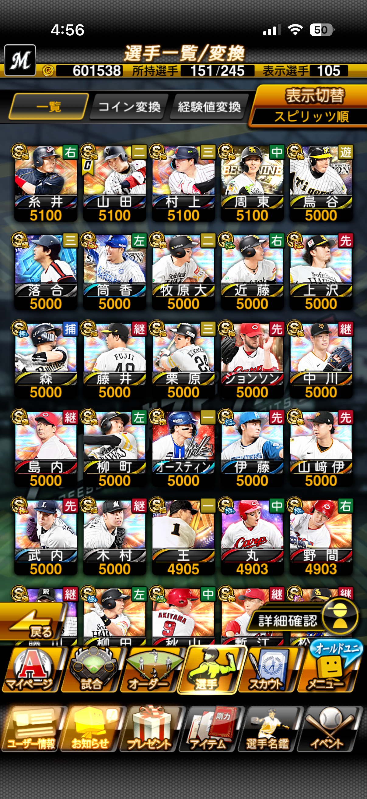 隊伍戰力破120000!!稀有最新武士隊山田 糸井 村神 杉內 破百A卡素材 多突破教練 後續培養無煩腦 特殊技能已練到128