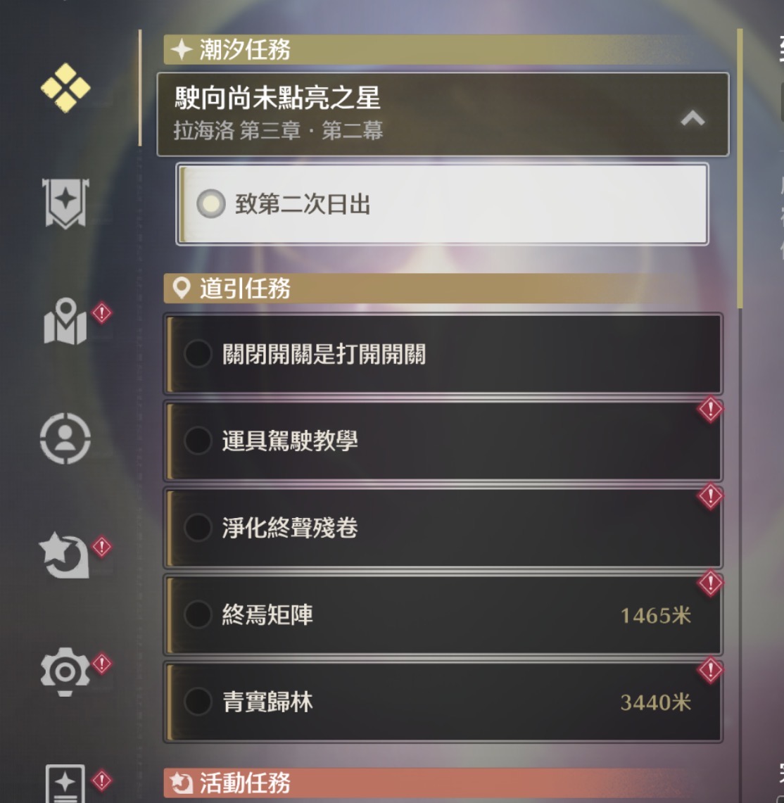地圖:冰原尚未探索完、活動沒什麼做。主線會隨著時間推移做,所以主線進度以實際情況為主。