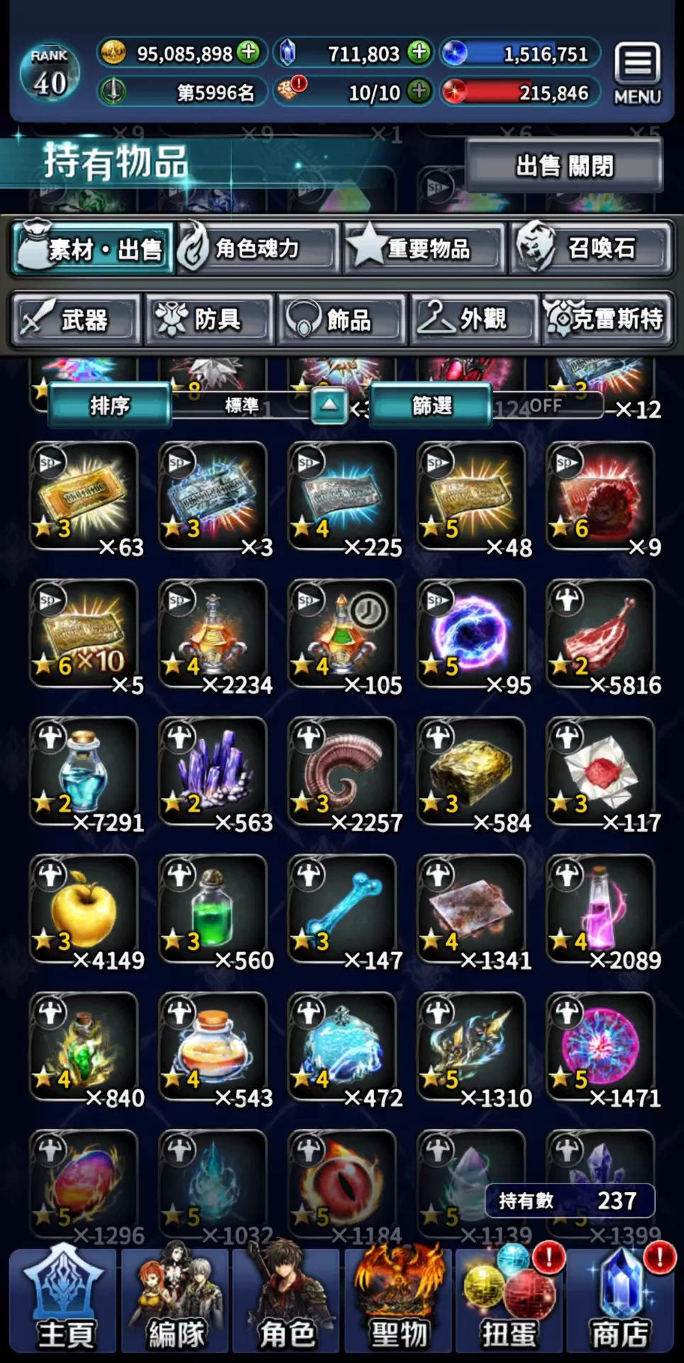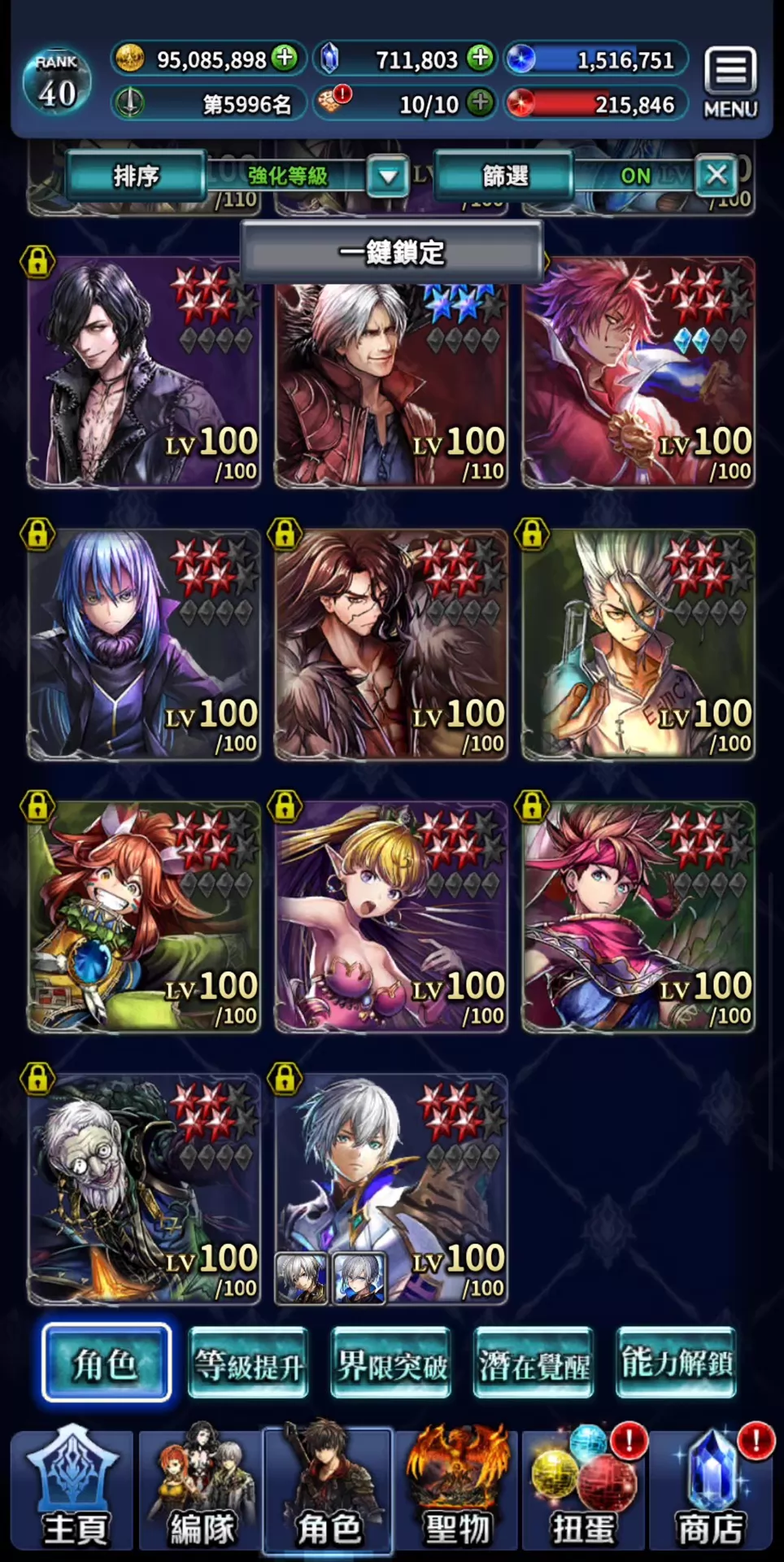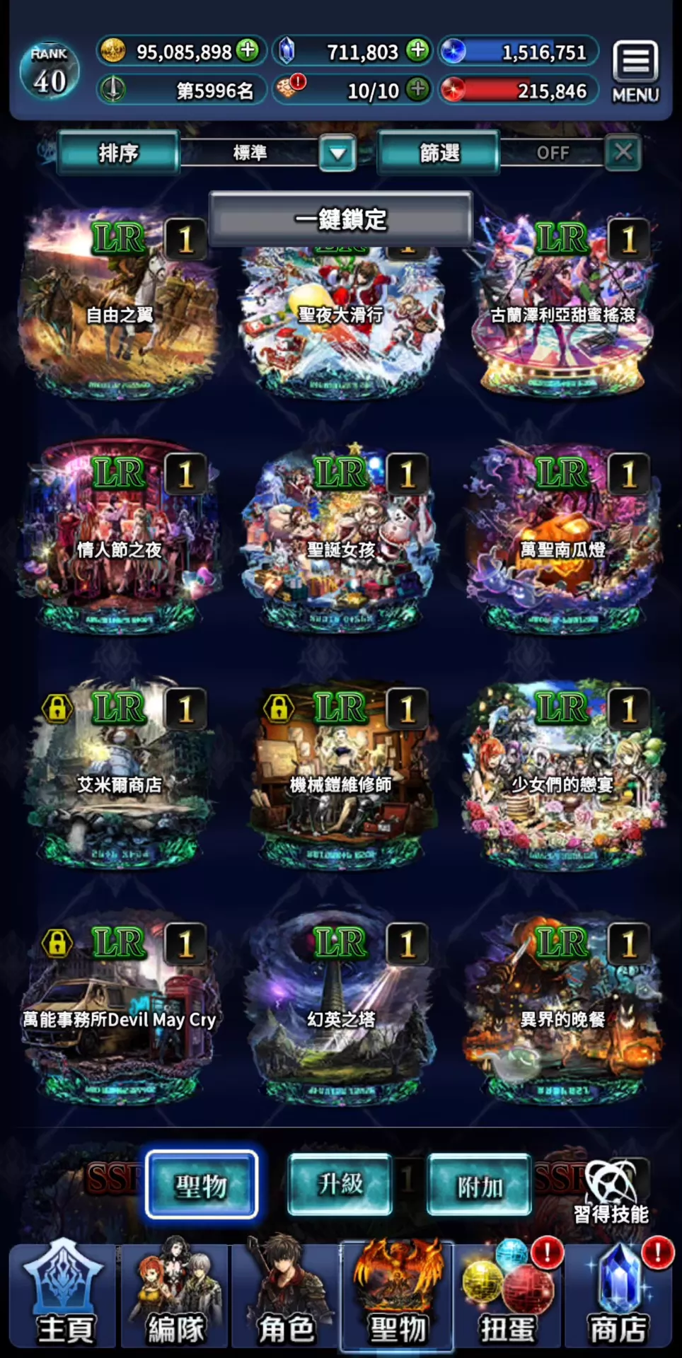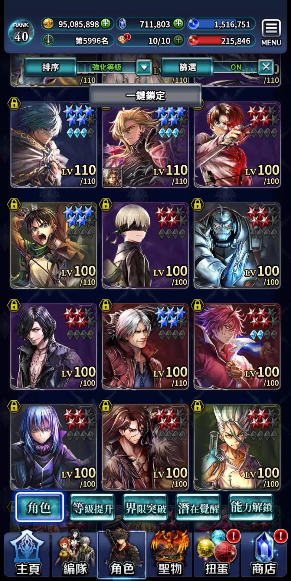 帳號 【40等】 ⚡豪恒工作室⚡71萬鑽 多聯動,多限定13UR14LR 聯動最新的日向紅丸全抽到