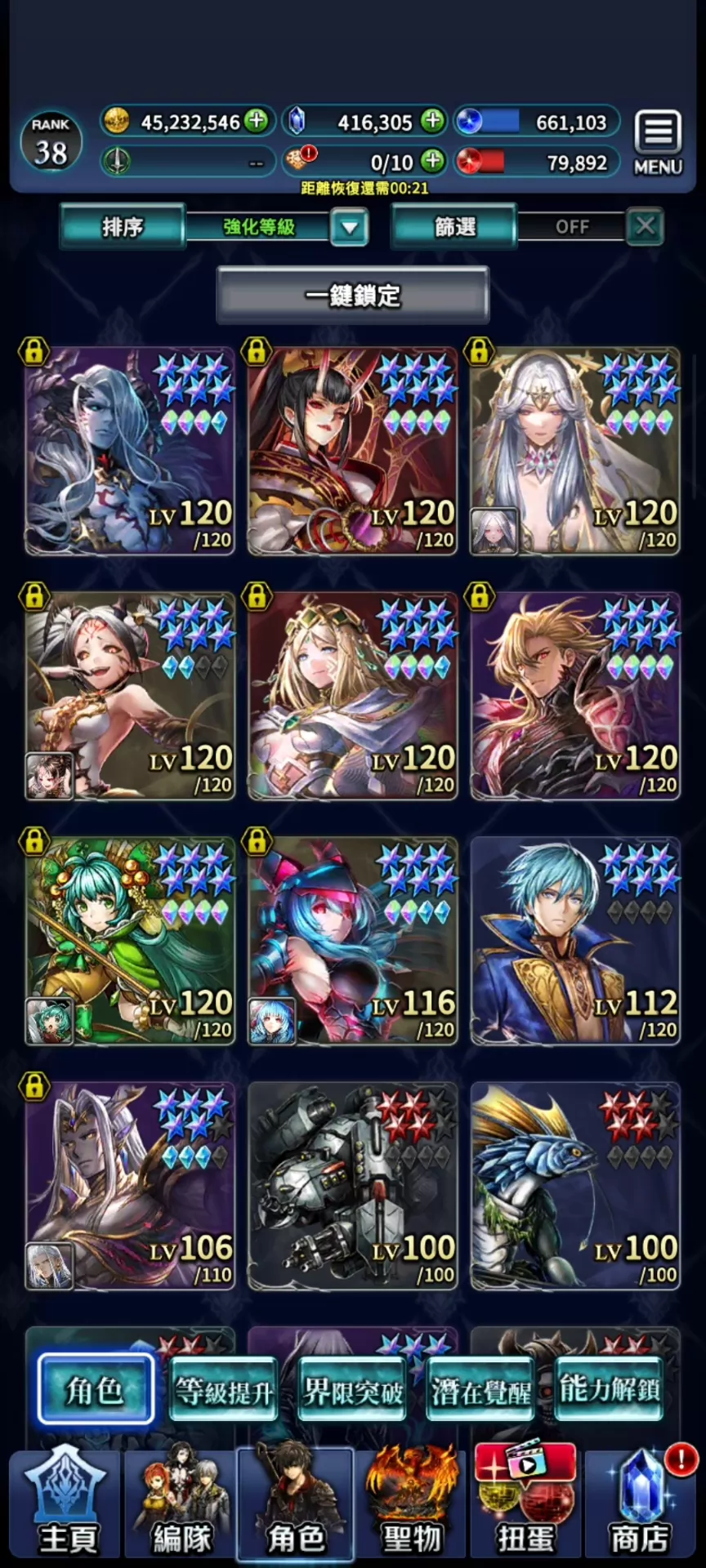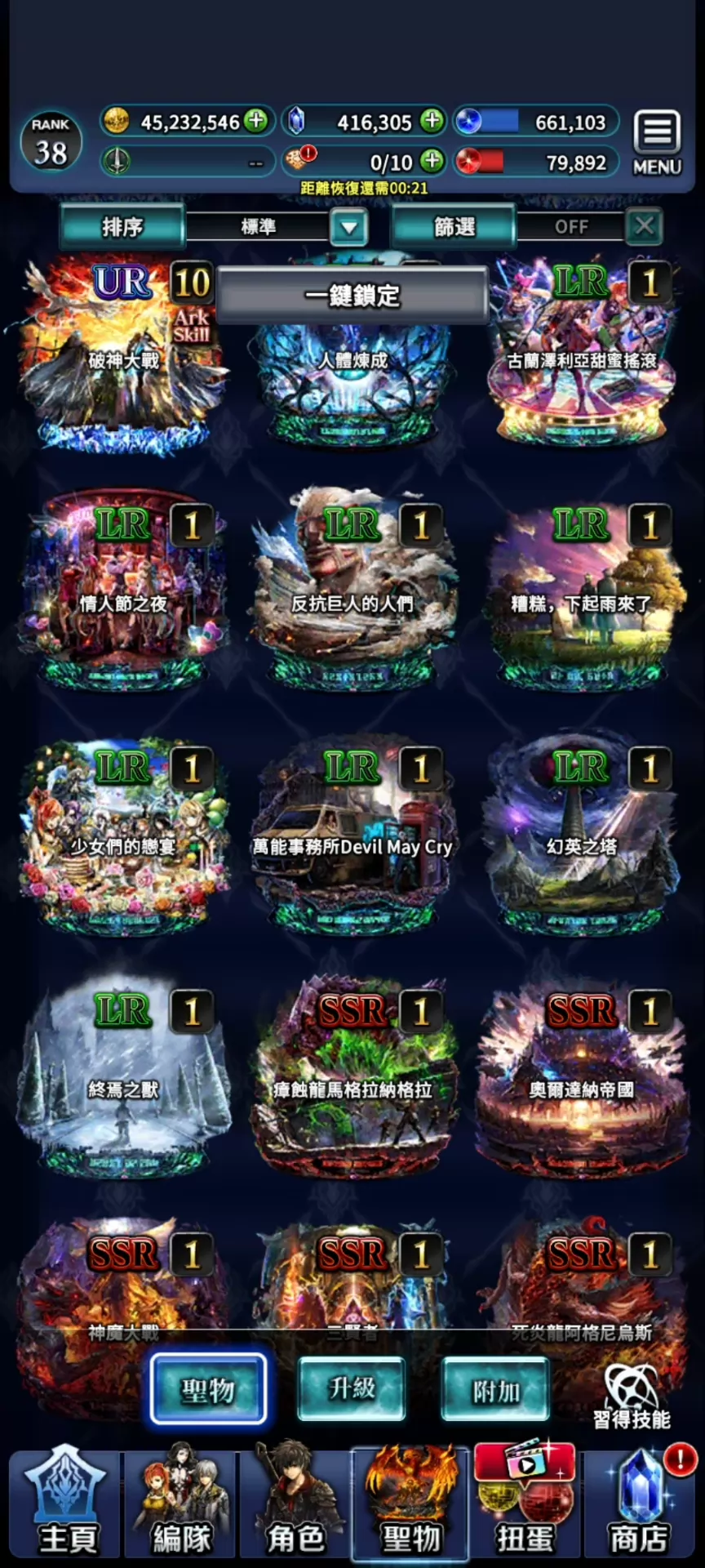 10UR。43萬鑽 。新破神,天照+氪金裝,女神+氪金裝配UR,魔人+氪金裝配UR。