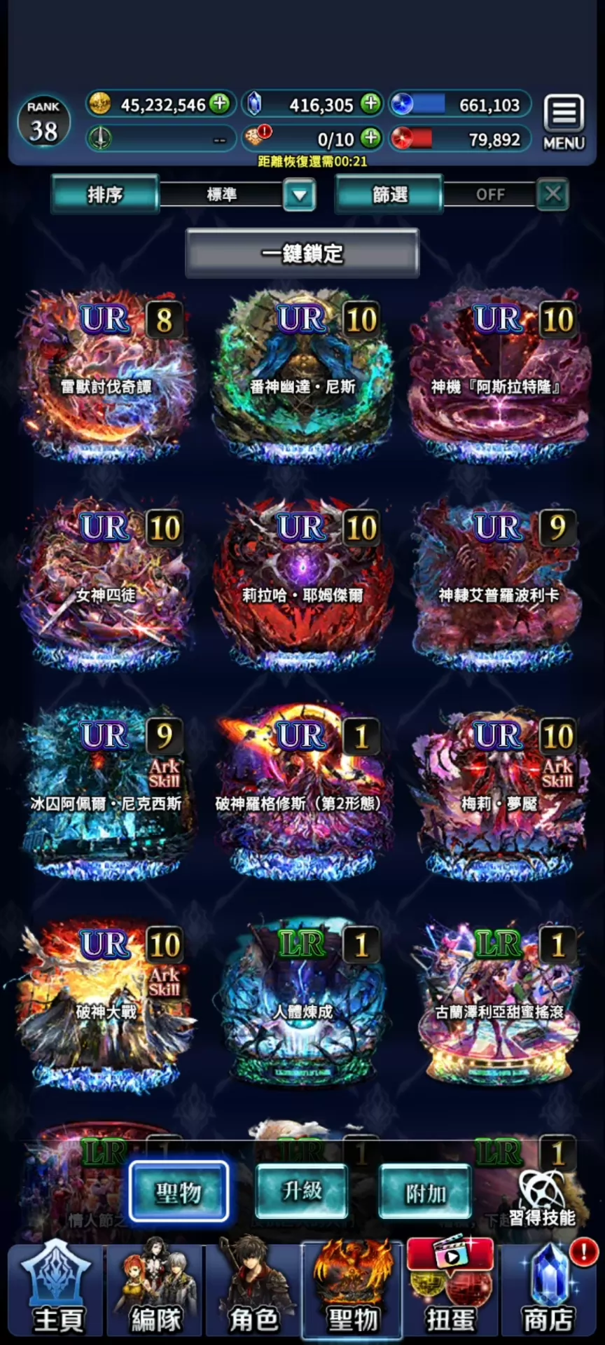 帳號 【38等】 ⚡豪恒工作室⚡10UR。43萬鑽 。新破神,天照+氪金裝,女神+氪金裝配UR