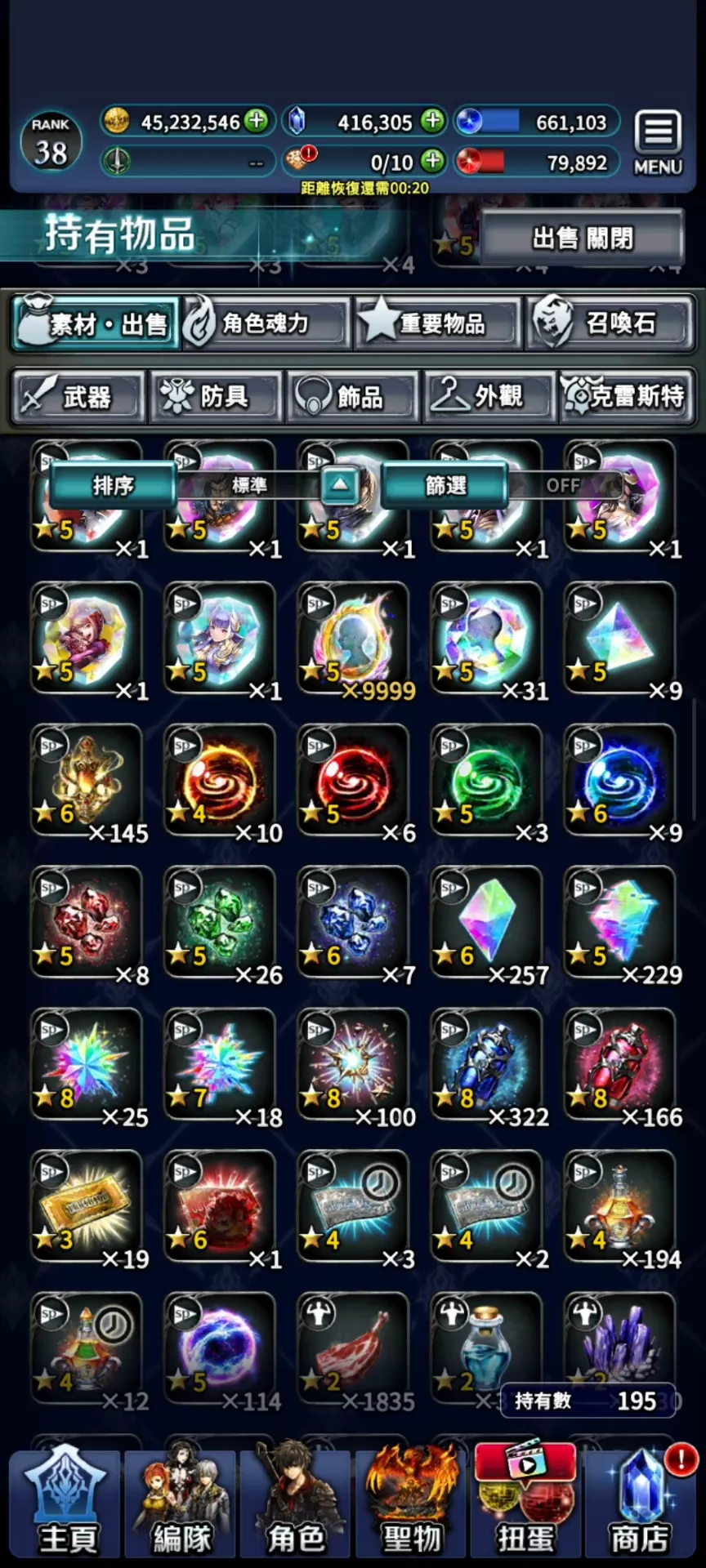 紅鑽2萬多,進度普通完,困難,超難還有很多鑽可挖。萬能SC30個可拉滿1人物。萬能UR9個可拉滿破神UR了。材料很多。
