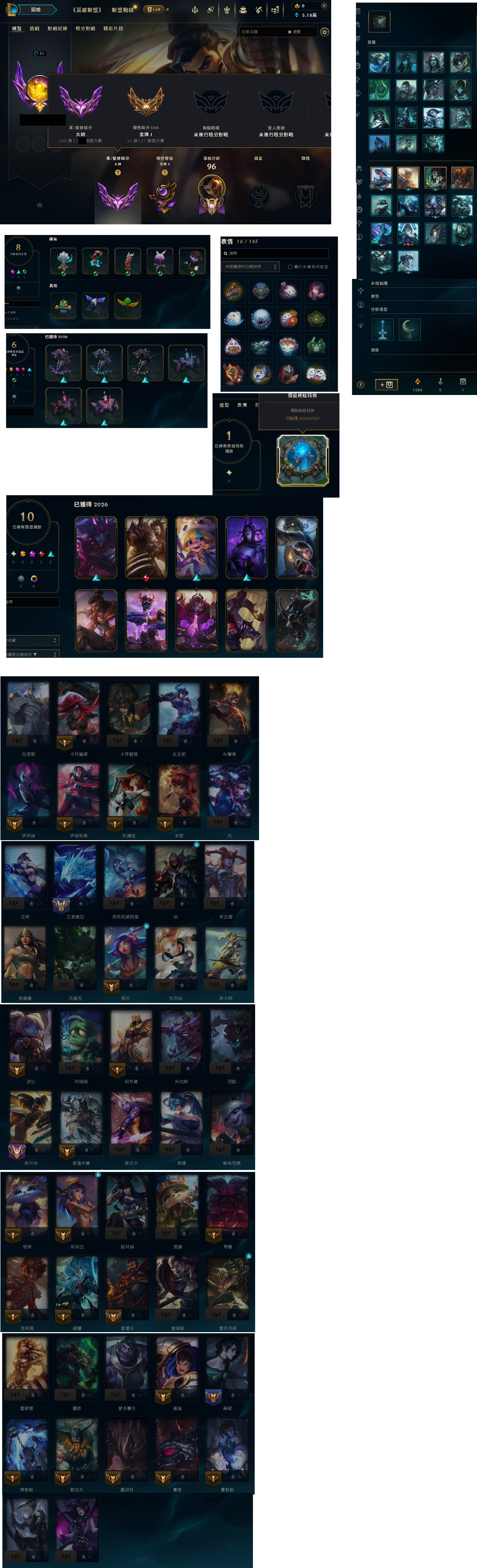 "目前單雙大師2**分(高隱)、彈性金1.37(高隱) 藍粉5.18萬召喚師名稱無不雅