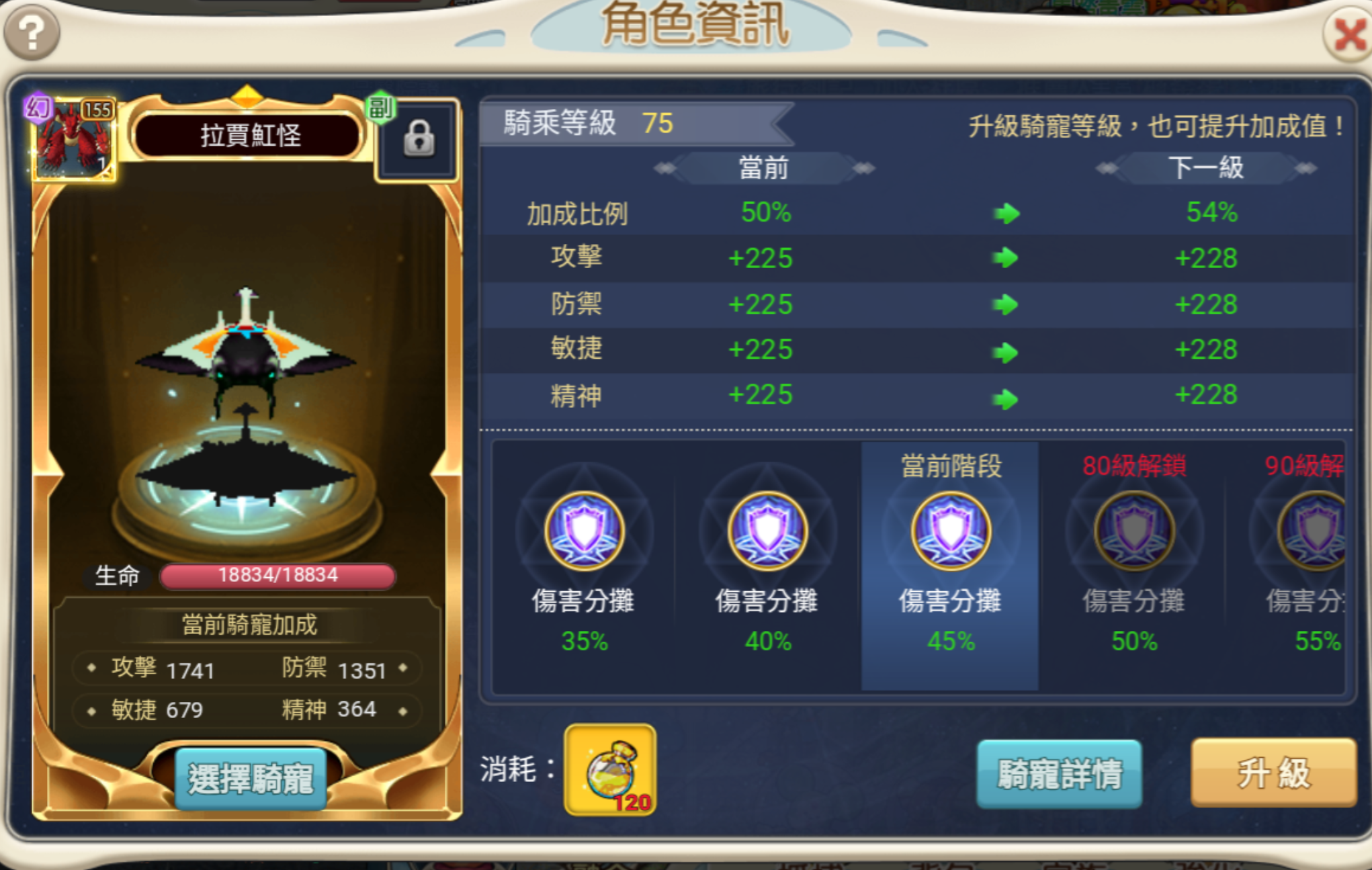 坐騎等級:77等 圖鑑星數:515星. 時空可打1300多萬
