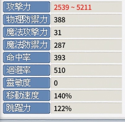 裝備 素質如圖