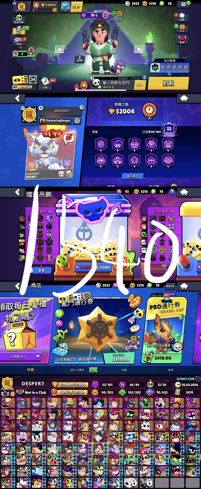 備註:稀有低儲五折號,商店內儲值都只要五折,Pro通行證410元高級通行證210元