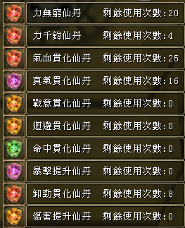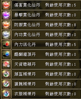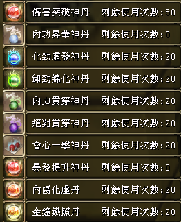 此帳 賣點 新丹的內功 50顆吃滿了 還有暴傷也吃滿