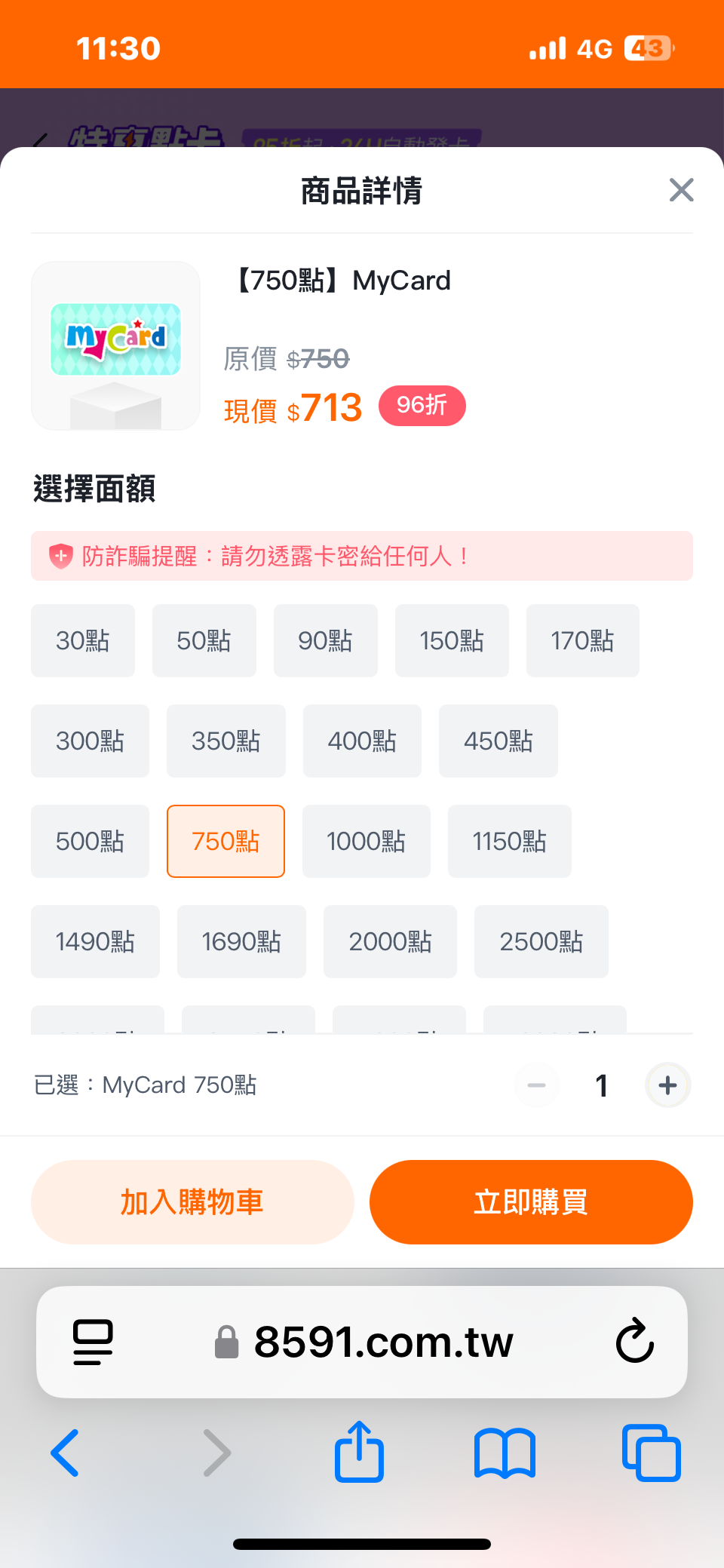 賣my card點卡750
