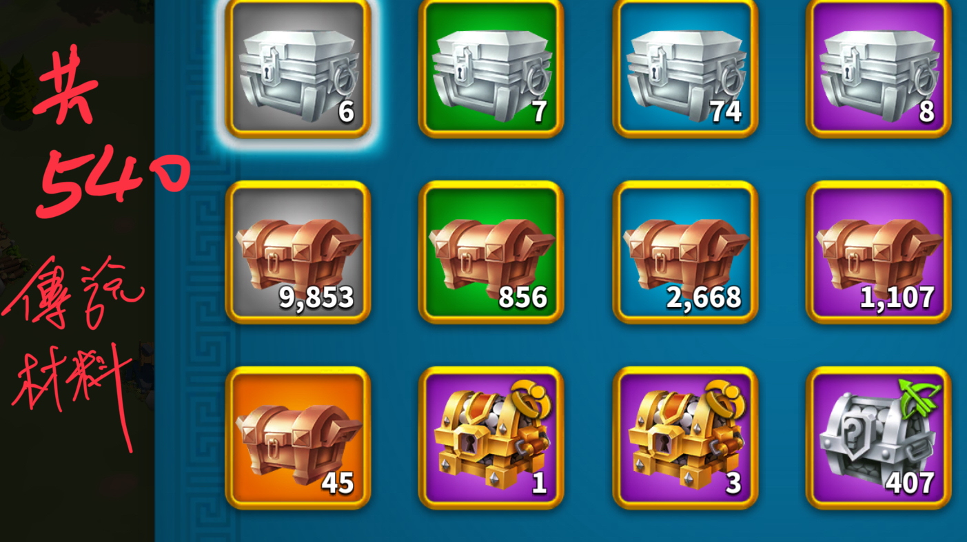傳說材料:布木石540+79 個/ 骨頭:979個