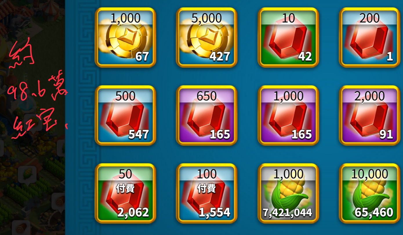 體力罐:有圖就不計算了,但搶個榮譽第一名應該是沒問題
