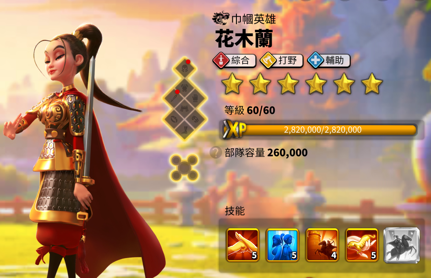 => 主帳+6個採集帳 (有3帳有補兵功能, 4級兵種)
